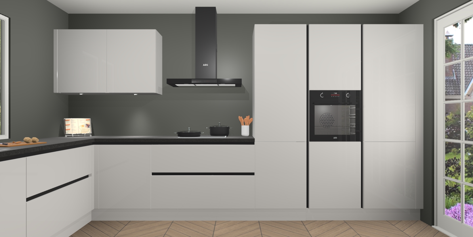 Heeft u nog apparatuur nodig? Geen probleem: de Zijdegrijze hoogglans greeploze keuken Debrecen bevat vijf ingebouwde apparaten - een oven, inductiekookplaat, afzuigkap, vaatwasser en koelkast - die gemakkelijk kunnen worden bijgewerkt naar AEG na bestelling. En als dat nog niet genoeg is; onze kasten worden pre-geassembleerd geleverd en zijn verkrijgbaar tegen een vastgeroeste lage prijs! U hoeft nooit meer te zoeken naar goede kwaliteit en service want onze producten hebben echt Duitse kwaliteit.