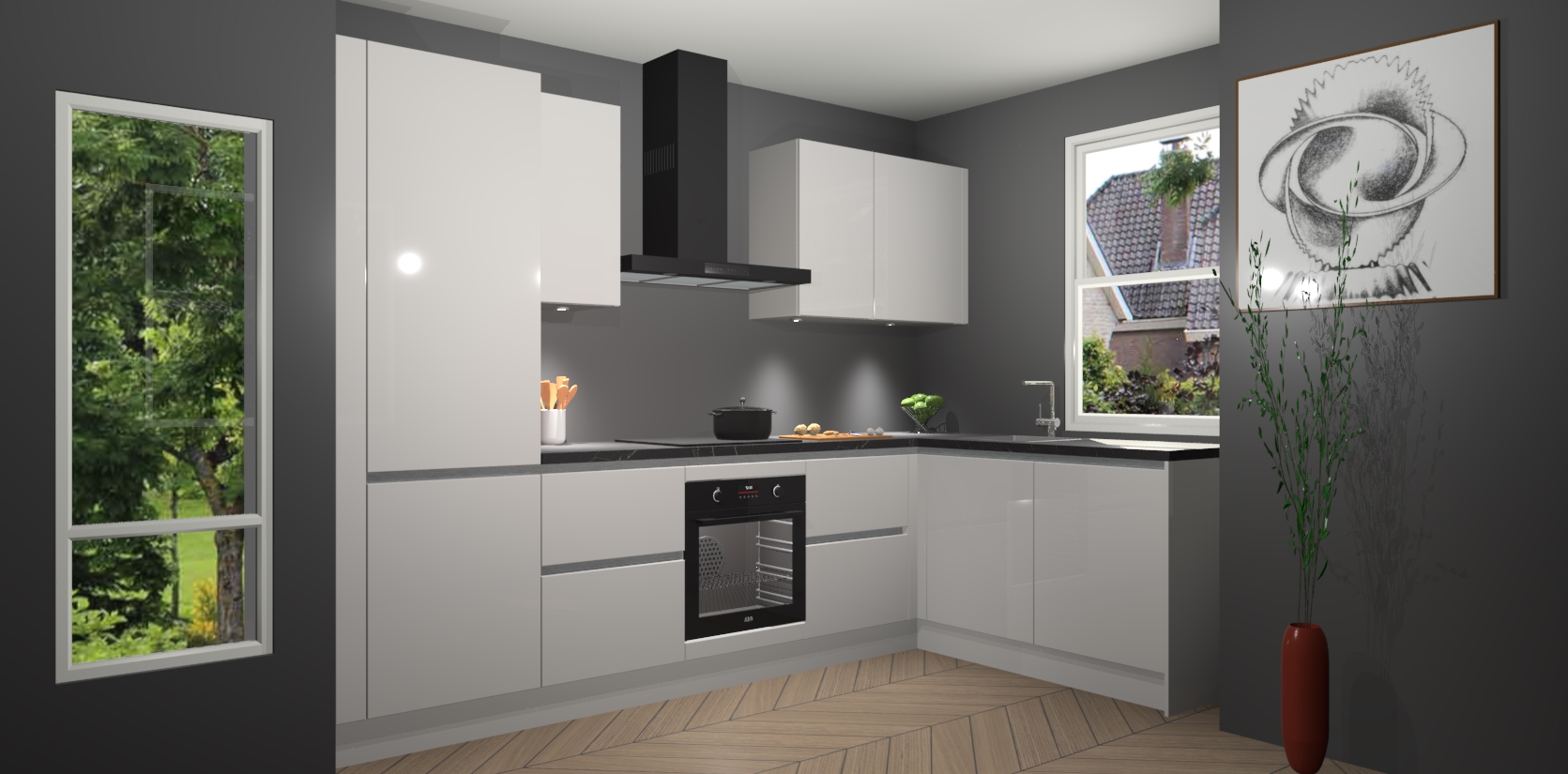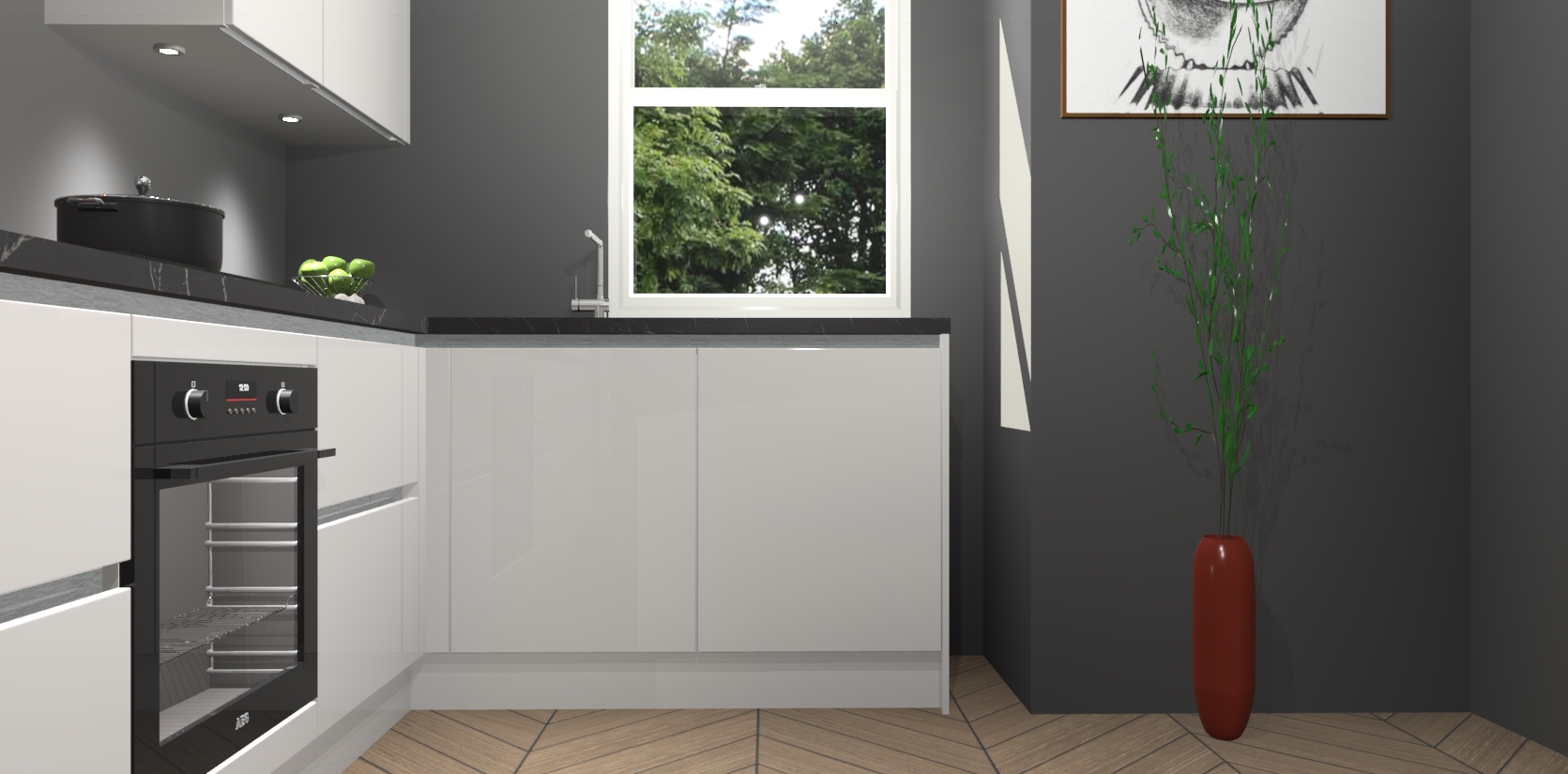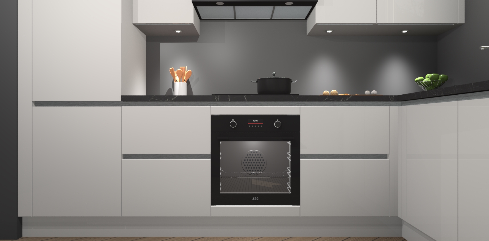 De Zijdegrijze hoogglans greeploze keuken Geneve is uitgerust met 5 inbouwapparaten - een oven, inductiekookplaat, afzuigkap, vaatwasser en koelkast - voor al uw kook- en bewaarbehoeftes. U kunt deze apparaten desgewenst eenvoudig upgraden naar AEG of de oven omruilen voor een combimagnetron na het plaatsen van uw bestelling. En met de soft close deuren, voldoende opbergruimte en kasten die voorgemonteerd worden geleverd, bent u in een mum van tijd klaar om heerlijke maaltijden te bereiden!