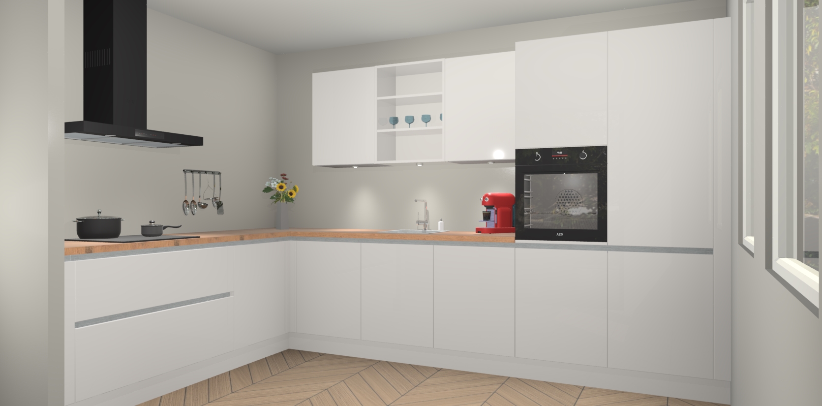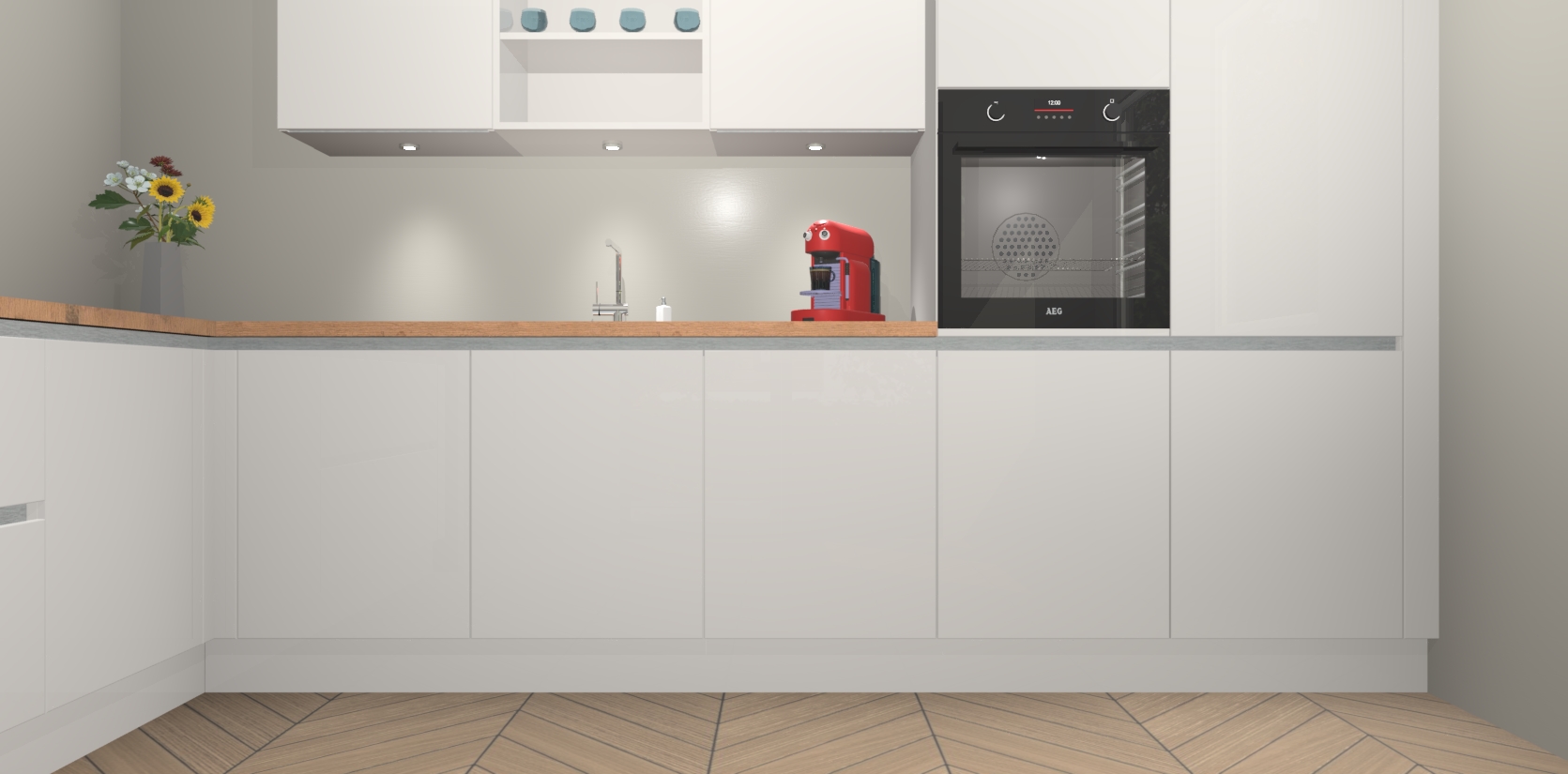 De Zijdegrijze hoogglans greeploze keuken Gotenburg is zo ontworpen dat u alle mogelijke vormen van opslagruimte kunt genieten. Bovendien heeft u meteen toegang tot vijf ingebouwde apparaten: een oven, inductiekookplaat, afzuigkap, vaatwasser en koelkast. Gewoon upgraden naar AEG na bestelling? Dit kan heel gemakkelijk worden geregeld. De deuren sluiten zacht dankzij zachtsluitende scharnieren en ze houden warmte vast terwijl ze uitzonderlijk stil blijven wanneer ze worden geopend of gesloten.