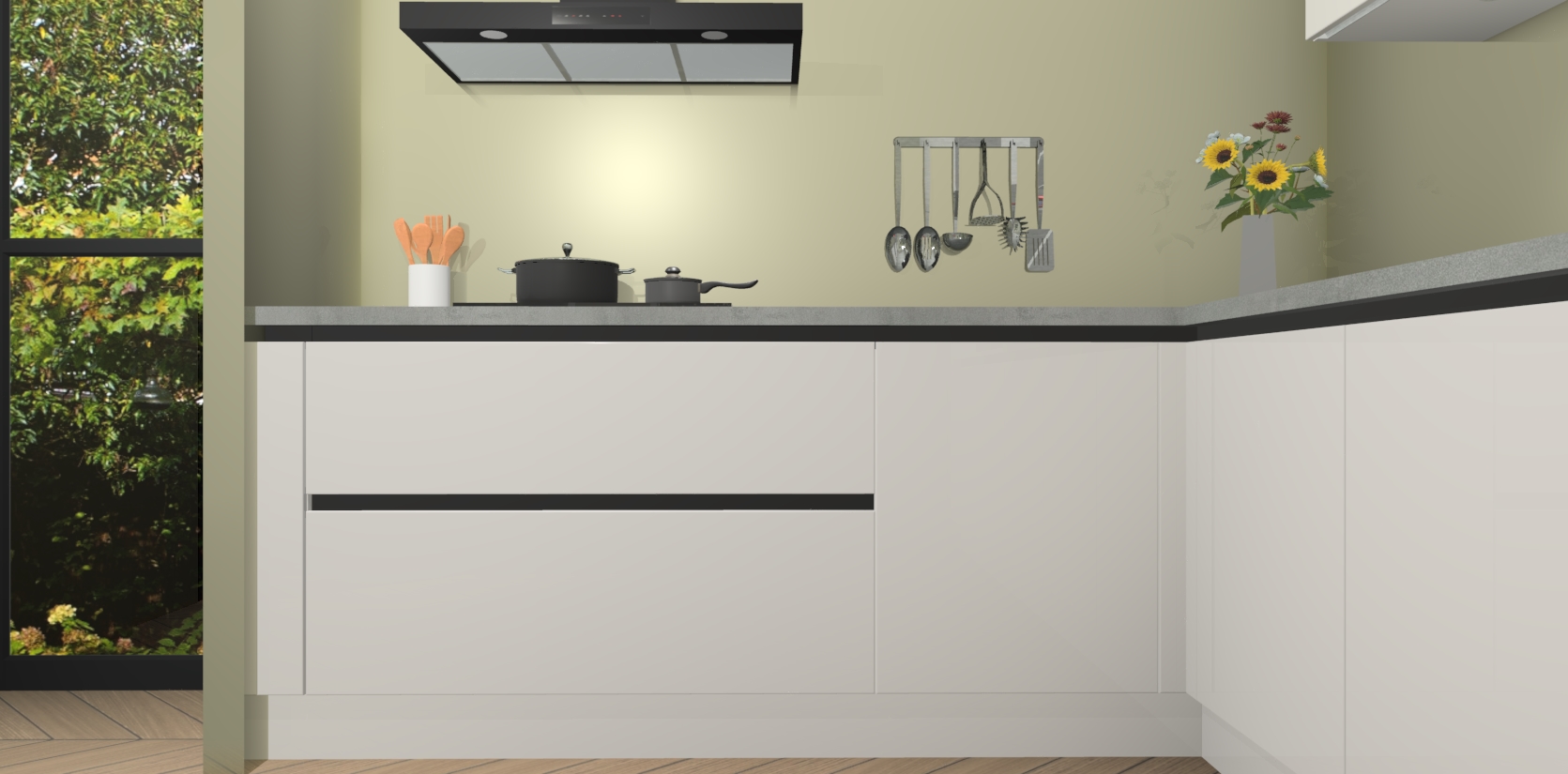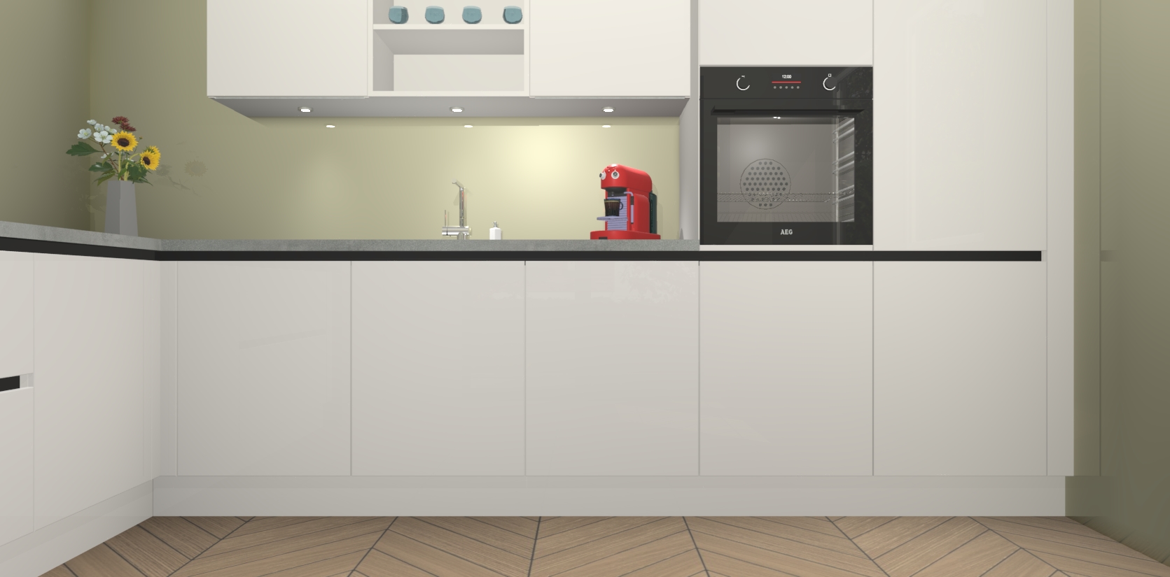 De Zijdegrijze hoogglans greeploze keuken Gotenburg is zo ontworpen dat u alle mogelijke vormen van opslagruimte kunt genieten. Bovendien heeft u meteen toegang tot vijf ingebouwde apparaten: een oven, inductiekookplaat, afzuigkap, vaatwasser en koelkast. Gewoon upgraden naar AEG na bestelling? Dit kan heel gemakkelijk worden geregeld. De deuren sluiten zacht dankzij zachtsluitende scharnieren en ze houden warmte vast terwijl ze uitzonderlijk stil blijven wanneer ze worden geopend of gesloten.