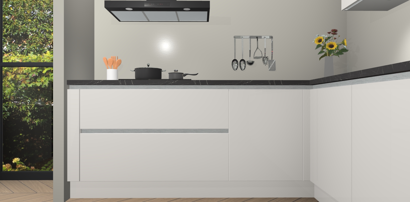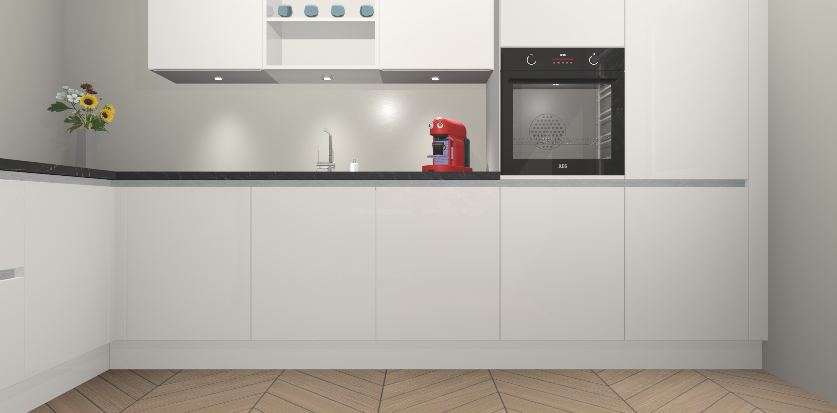 De Zijdegrijze hoogglans greeploze keuken Gotenburg is zo ontworpen dat u alle mogelijke vormen van opslagruimte kunt genieten. Bovendien heeft u meteen toegang tot vijf ingebouwde apparaten: een oven, inductiekookplaat, afzuigkap, vaatwasser en koelkast. Gewoon upgraden naar AEG na bestelling? Dit kan heel gemakkelijk worden geregeld. De deuren sluiten zacht dankzij zachtsluitende scharnieren en ze houden warmte vast terwijl ze uitzonderlijk stil blijven wanneer ze worden geopend of gesloten.
