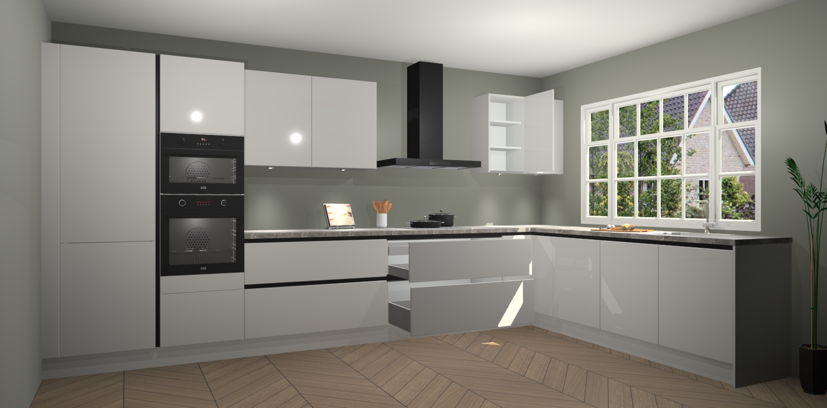 Heeft u nog apparatuur nodig? Geen probleem: de zijdegrijze hoogglans greeploze keuken Graz bevat vijf ingebouwde apparaten - een oven, inductiekookplaat, afzuigkap, vaatwasser en koelkast - die gemakkelijk kunnen worden bijgewerkt naar AEG na bestelling. En als dat nog niet genoeg is; onze kasten worden pre-geassembleerd geleverd en zijn verkrijgbaar tegen een vastgeroeste lage prijs! U hoeft nooit meer te zoeken naar goede kwaliteit en service want onze producten hebben echt Duitse kwaliteit.