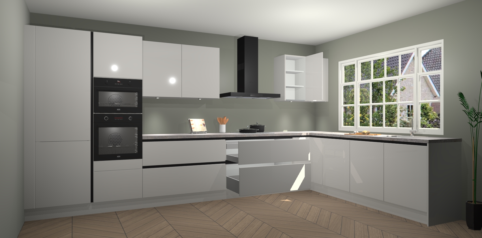 Heeft u nog apparatuur nodig? Geen probleem: de zijdegrijze hoogglans greeploze keuken Graz bevat vijf ingebouwde apparaten - een oven, inductiekookplaat, afzuigkap, vaatwasser en koelkast - die gemakkelijk kunnen worden bijgewerkt naar AEG na bestelling. En als dat nog niet genoeg is; onze kasten worden pre-geassembleerd geleverd en zijn verkrijgbaar tegen een vastgeroeste lage prijs! U hoeft nooit meer te zoeken naar goede kwaliteit en service want onze producten hebben echt Duitse kwaliteit.