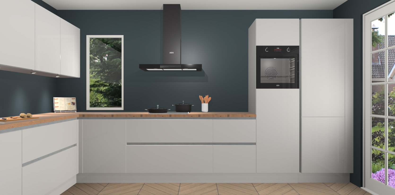 Heeft u nog apparatuur nodig? Geen probleem: de zijdegrijze hoogglans greeploze keuken Harare bevat vijf ingebouwde apparaten - een oven, inductiekookplaat, afzuigkap, vaatwasser en koelkast - die gemakkelijk kunnen worden bijgewerkt naar AEG na bestelling. En als dat nog niet genoeg is; onze kasten worden pre-geassembleerd geleverd en zijn verkrijgbaar tegen een vastgeroeste lage prijs! U hoeft nooit meer te zoeken naar goede kwaliteit en service want onze producten hebben echt Duitse kwaliteit.