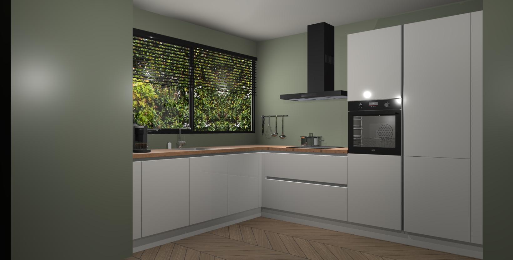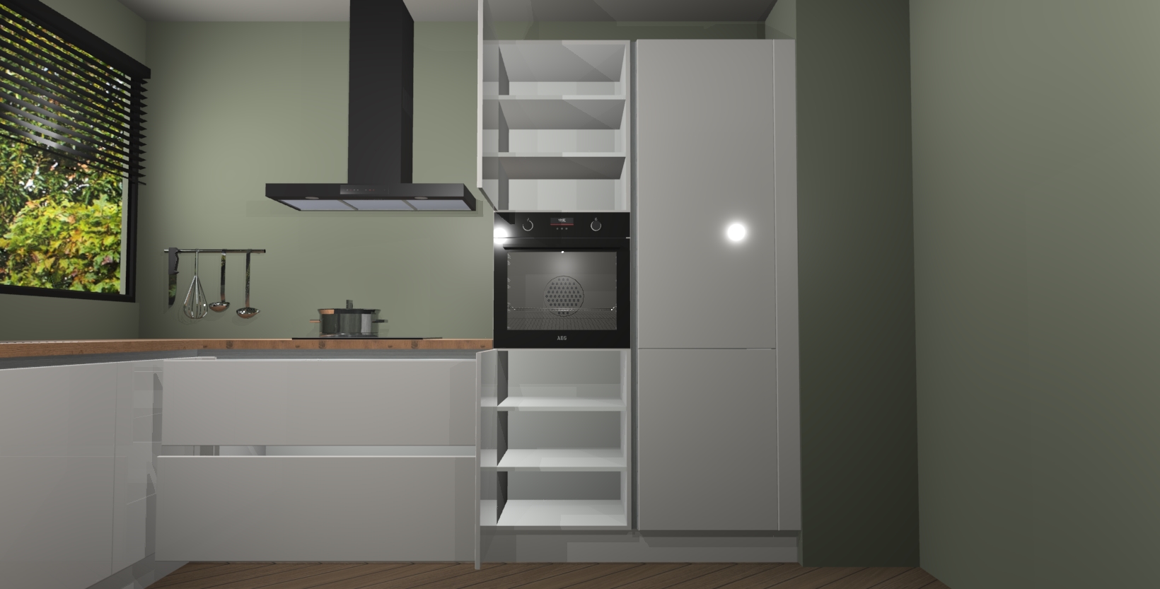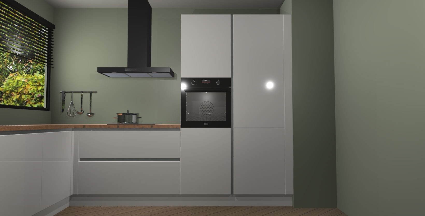 Met een modern, tijdloos design en ruime opslagruimte, zult u zich in no-time thuis voelen in uw nieuwe keuken. Uw leven wordt eenvoudiger met de soft-close deuren die voor het ultieme stille comfort zorgen - geen geluid dat u stoort terwijl u kookt. Ook is de keuken voorzien van 5 ingebouwde apparaten: een oven, inductie kookplaat, afzuigkap, vaatwasser en koelkast. Deze kunnen gemakkelijk na bestelling worden bijgewerkt naar AEG - waardoor uw luxe ervaring compleet is.