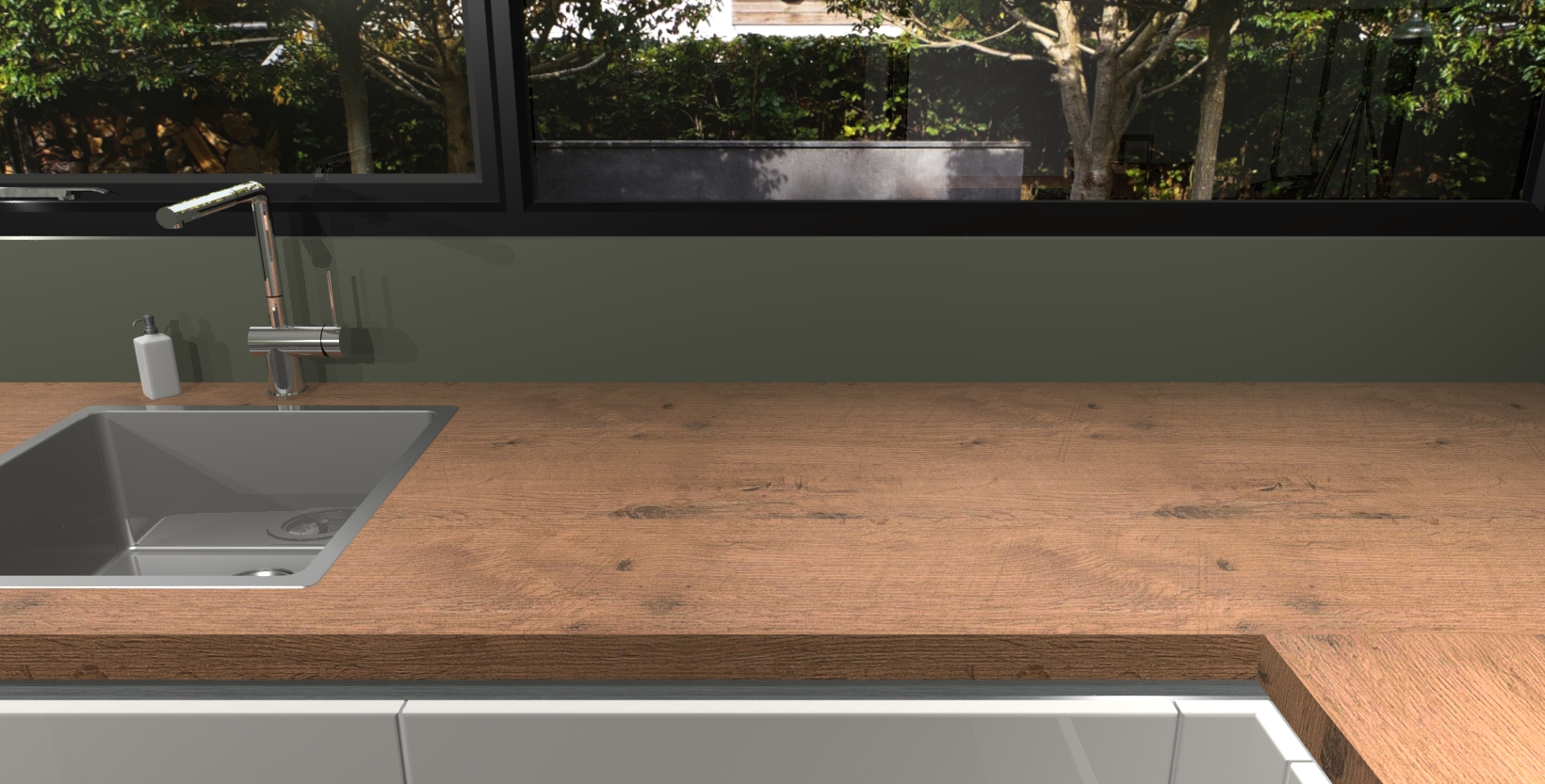 - Bij een hoekwerkblad zijn de hoeken in gevreesd en op maat gemaakt