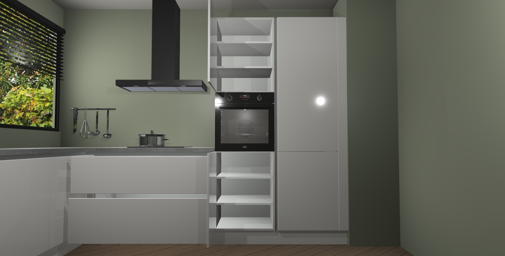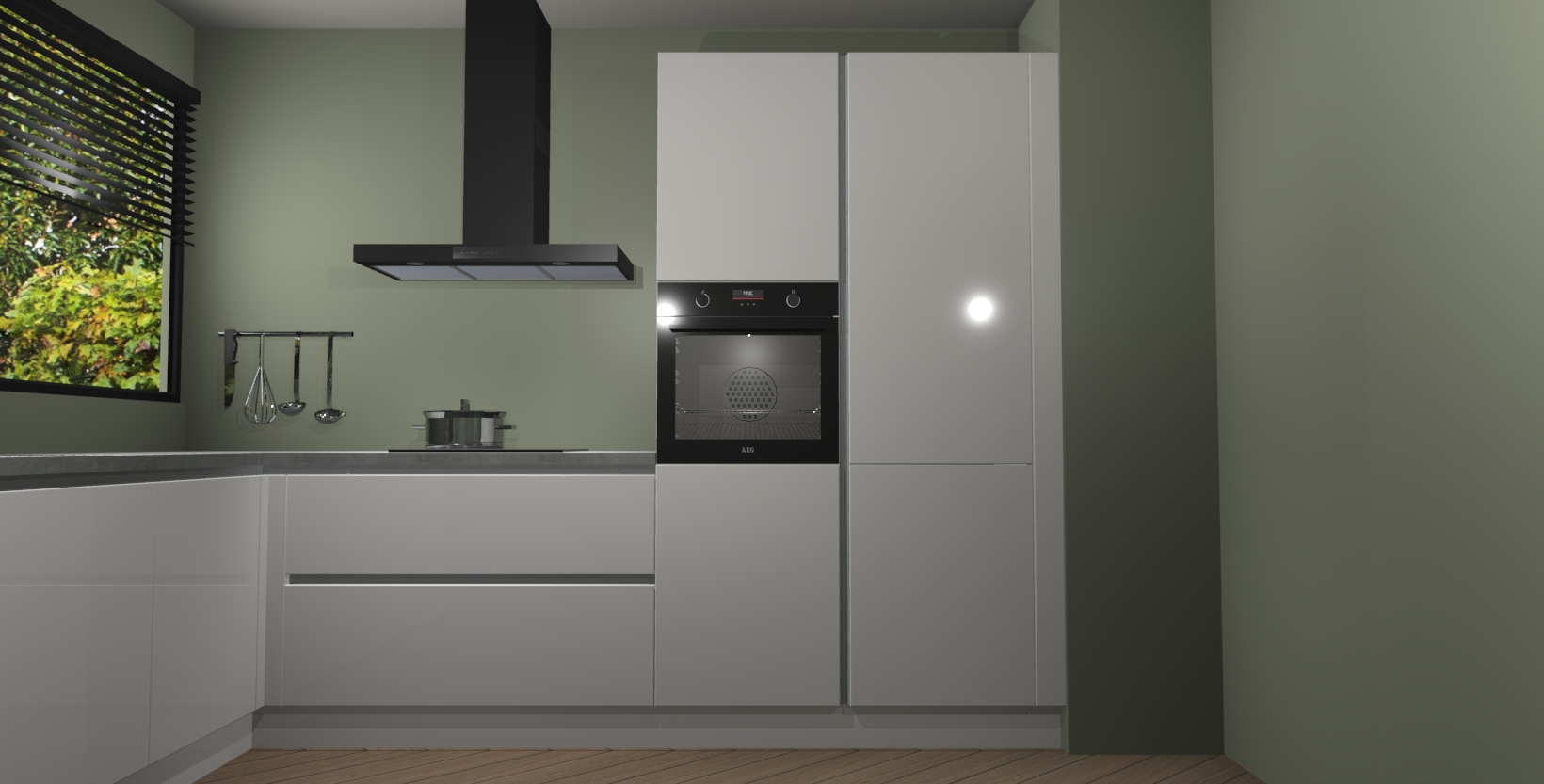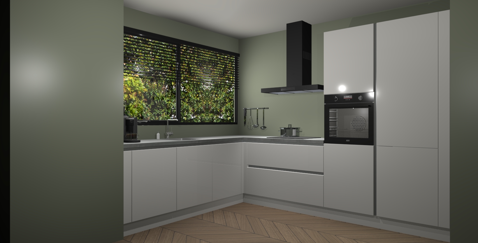 Met een modern, tijdloos design en ruime opslagruimte, zult u zich in no-time thuis voelen in uw nieuwe keuken. Uw leven wordt eenvoudiger met de soft-close deuren die voor het ultieme stille comfort zorgen - geen geluid dat u stoort terwijl u kookt. Ook is de keuken voorzien van 5 ingebouwde apparaten: een oven, inductie kookplaat, afzuigkap, vaatwasser en koelkast. Deze kunnen gemakkelijk na bestelling worden bijgewerkt naar AEG - waardoor uw luxe ervaring compleet is.