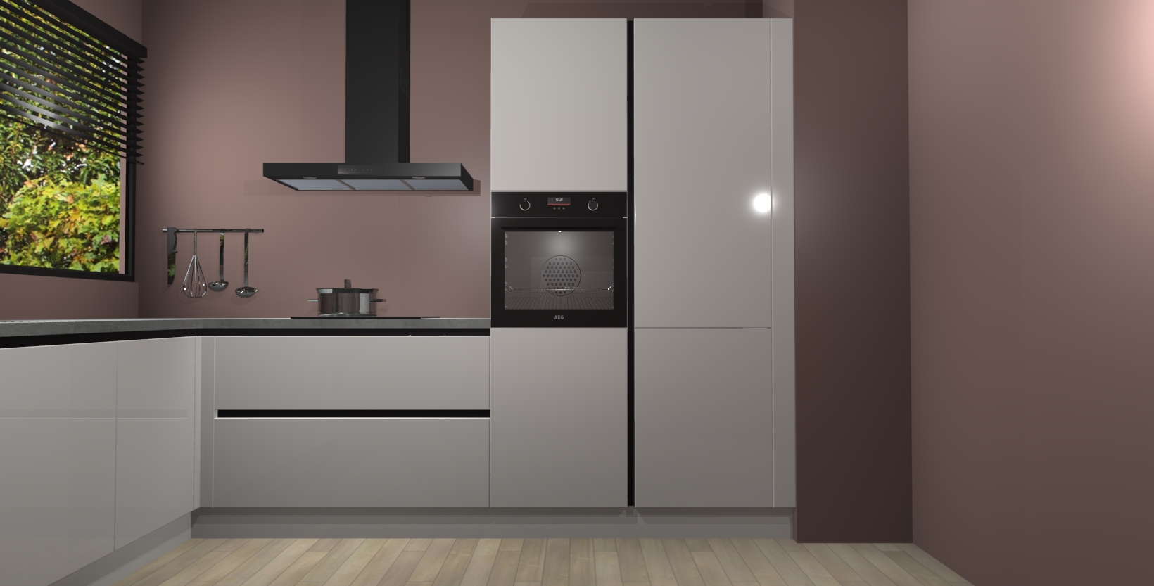 Met een modern, tijdloos design en ruime opslagruimte, zult u zich in no-time thuis voelen in uw nieuwe keuken. Uw leven wordt eenvoudiger met de soft-close deuren die voor het ultieme stille comfort zorgen - geen geluid dat u stoort terwijl u kookt. Ook is de keuken voorzien van 5 ingebouwde apparaten: een oven, inductie kookplaat, afzuigkap, vaatwasser en koelkast. Deze kunnen gemakkelijk na bestelling worden bijgewerkt naar AEG - waardoor uw luxe ervaring compleet is.