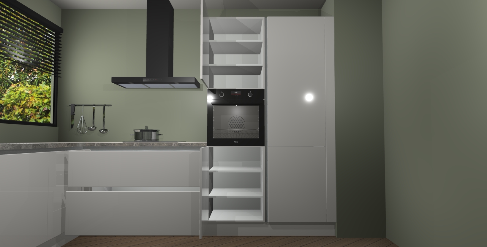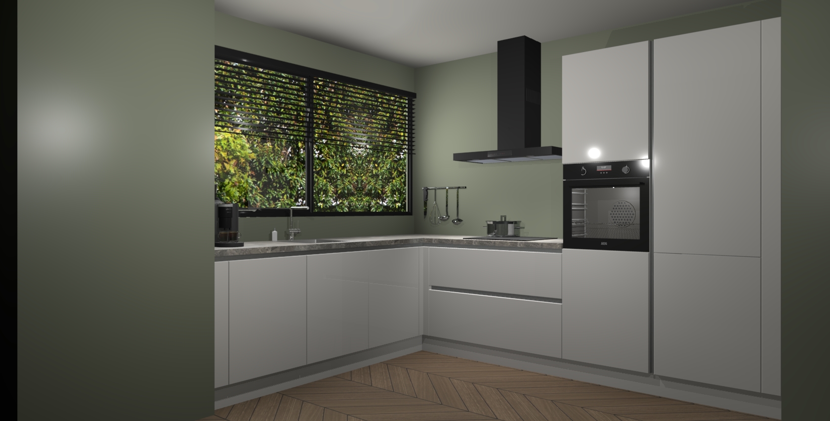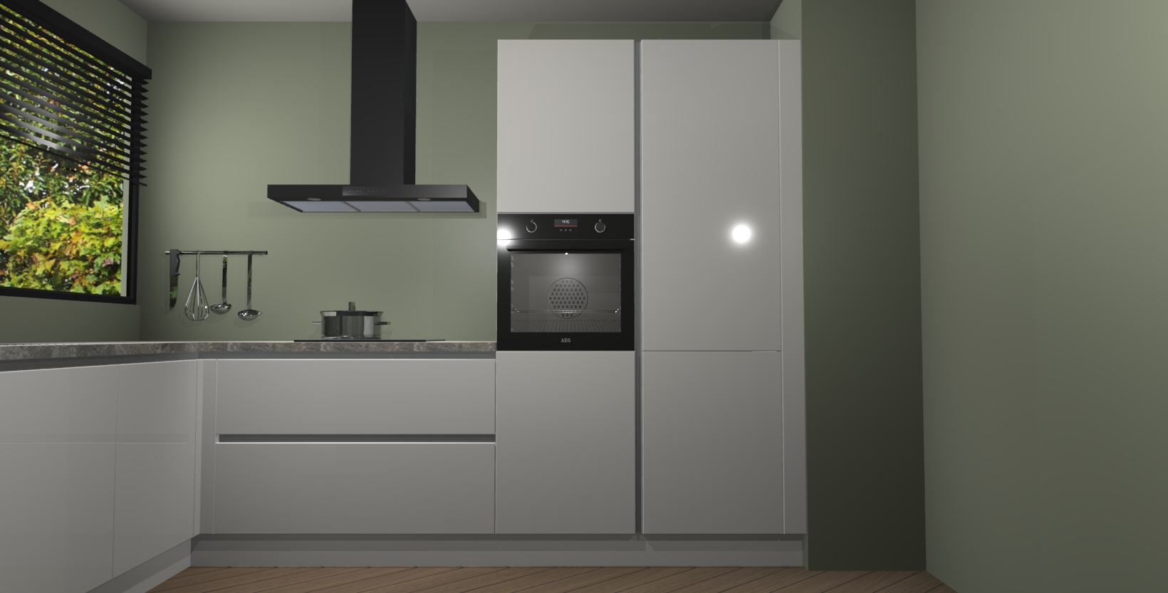 Met een modern, tijdloos design en ruime opslagruimte, zult u zich in no-time thuis voelen in uw nieuwe keuken. Uw leven wordt eenvoudiger met de soft-close deuren die voor het ultieme stille comfort zorgen - geen geluid dat u stoort terwijl u kookt. Ook is de keuken voorzien van 5 ingebouwde apparaten: een oven, inductie kookplaat, afzuigkap, vaatwasser en koelkast. Deze kunnen gemakkelijk na bestelling worden bijgewerkt naar AEG - waardoor uw luxe ervaring compleet is.