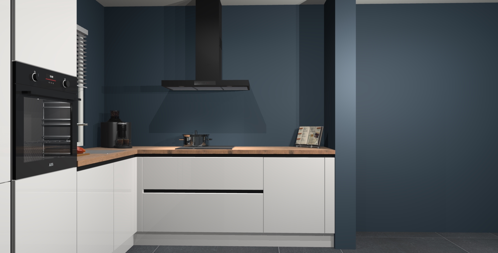 Met een modern, tijdloos design en ruime opslagruimte, zult u zich in no-time thuis voelen in uw nieuwe keuken. Uw leven wordt eenvoudiger met de soft-close deuren die voor het ultieme stille comfort zorgen - geen geluid dat u stoort terwijl u kookt. Ook is de keuken voorzien van 5 ingebouwde apparaten: een oven, inductie kookplaat, afzuigkap, vaatwasser en koelkast. Deze kunnen gemakkelijk na bestelling worden bijgewerkt naar AEG - waardoor uw luxe ervaring compleet is.