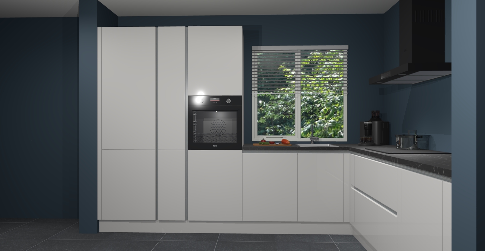 Met een modern, tijdloos design en ruime opslagruimte, zult u zich in no-time thuis voelen in uw nieuwe keuken. Uw leven wordt eenvoudiger met de soft-close deuren die voor het ultieme stille comfort zorgen - geen geluid dat u stoort terwijl u kookt. Ook is de keuken voorzien van 5 ingebouwde apparaten: een oven, inductie kookplaat, afzuigkap, vaatwasser en koelkast. Deze kunnen gemakkelijk na bestelling worden bijgewerkt naar AEG - waardoor uw luxe ervaring compleet is.