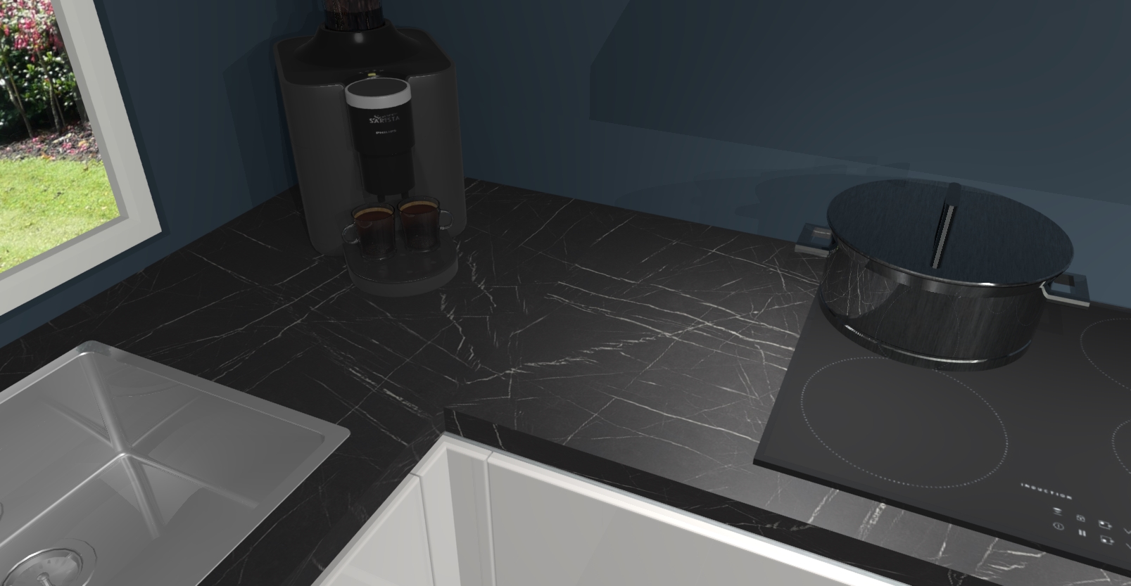 • Bij een hoekwerkblad zijn de hoeken in gevreesd en op maat gemaakt