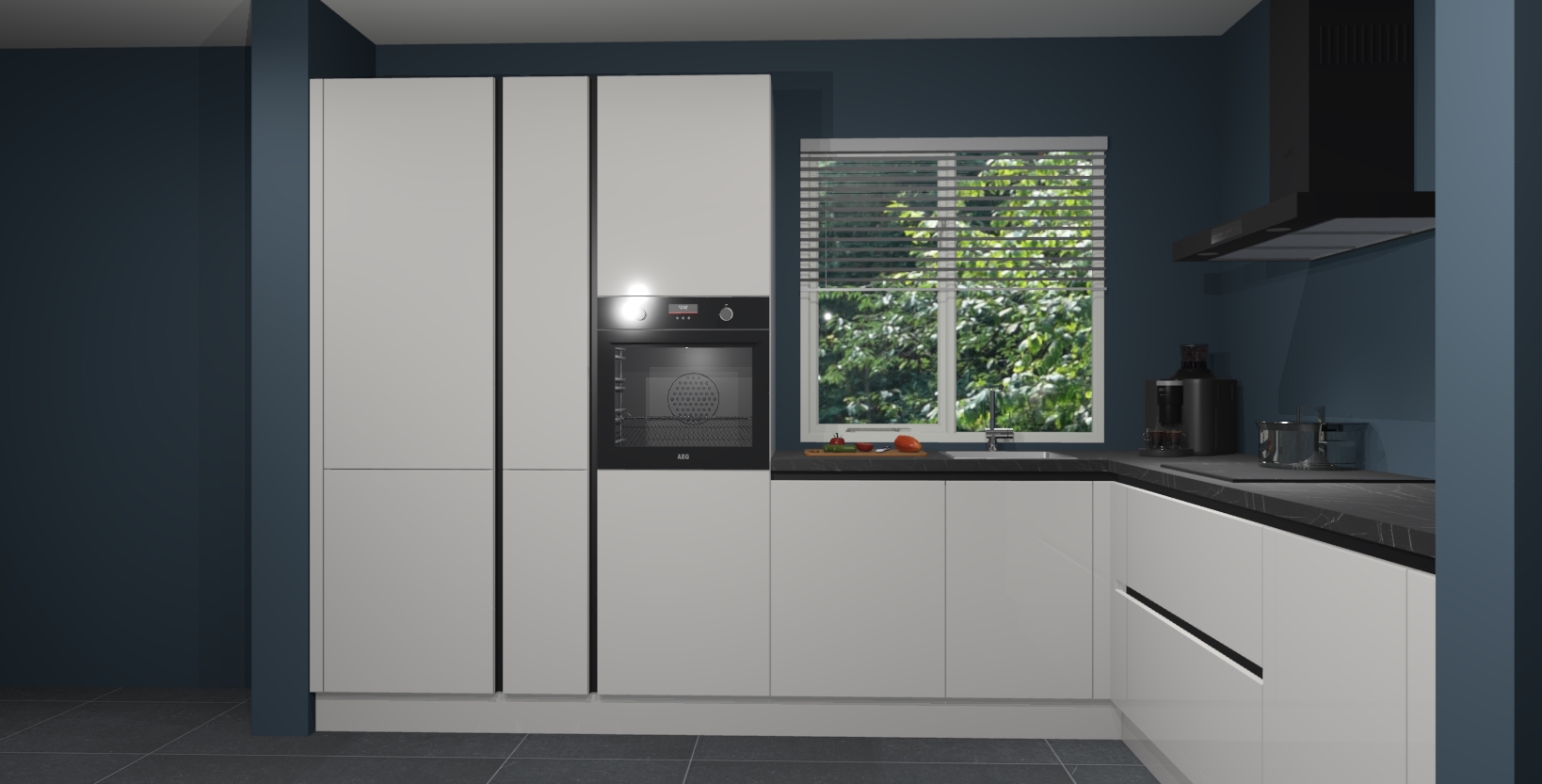 Met een modern, tijdloos design en ruime opslagruimte, zult u zich in no-time thuis voelen in uw nieuwe keuken. Uw leven wordt eenvoudiger met de soft-close deuren die voor het ultieme stille comfort zorgen - geen geluid dat u stoort terwijl u kookt. Ook is de keuken voorzien van 5 ingebouwde apparaten: een oven, inductie kookplaat, afzuigkap, vaatwasser en koelkast. Deze kunnen gemakkelijk na bestelling worden bijgewerkt naar AEG - waardoor uw luxe ervaring compleet is.