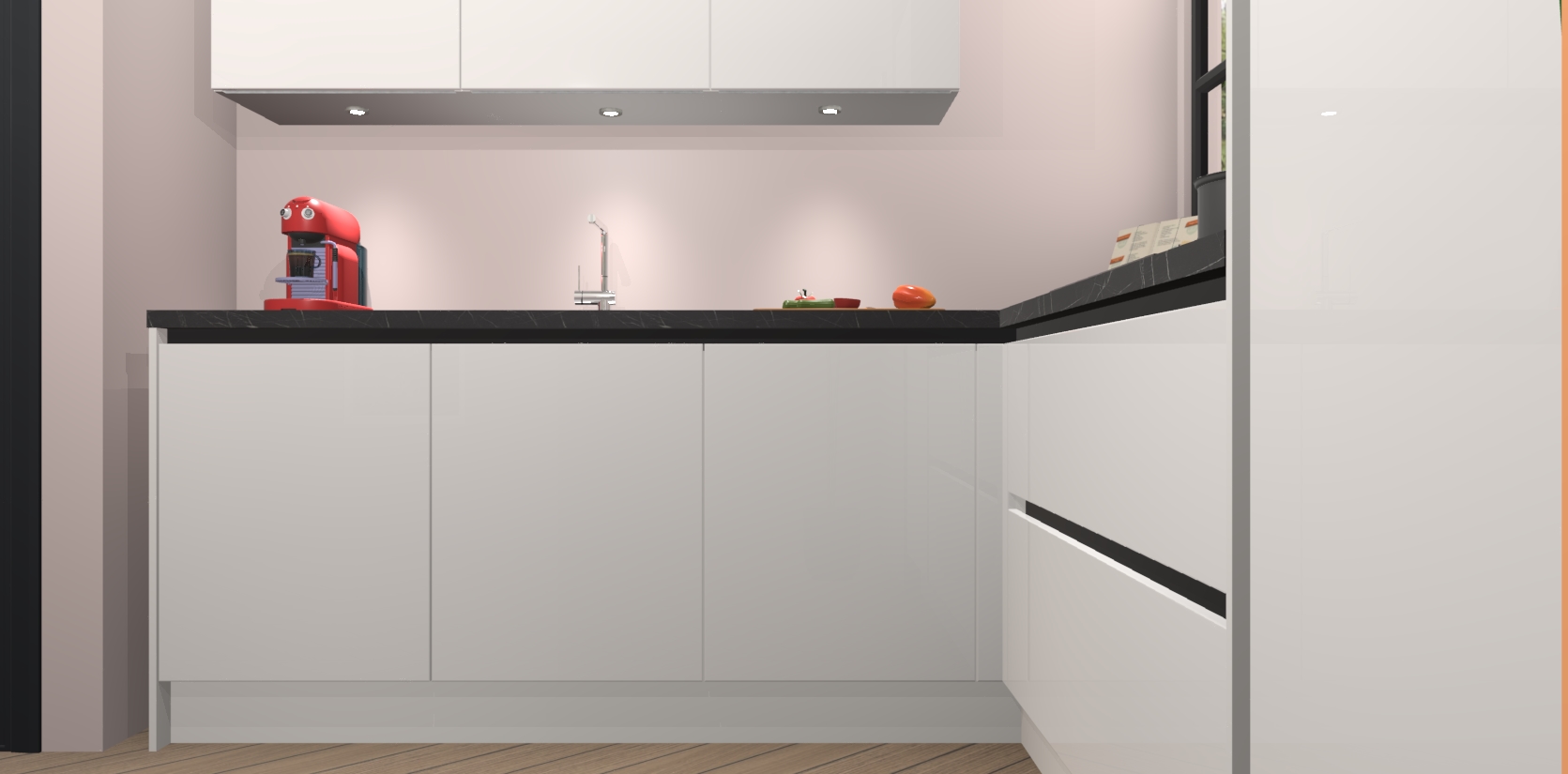 Inclusief plinten, stelpoten en werkblad