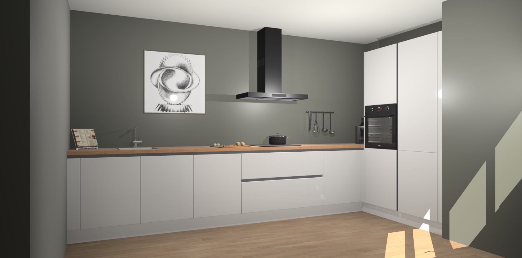 Welkom bij de Zijdegrijze hoogglans greeploze keuken Khao Lak. Deze prachtige keuken zal de komende jaren het middelpunt van de belangstelling in uw huis zijn. Uitgerust met vijf inbouwapparaten komt u nooit kookgereedschap tekort. Bovendien geeft de warme houtlook elke ruimte een uitnodigende en tijdloze uitstraling.