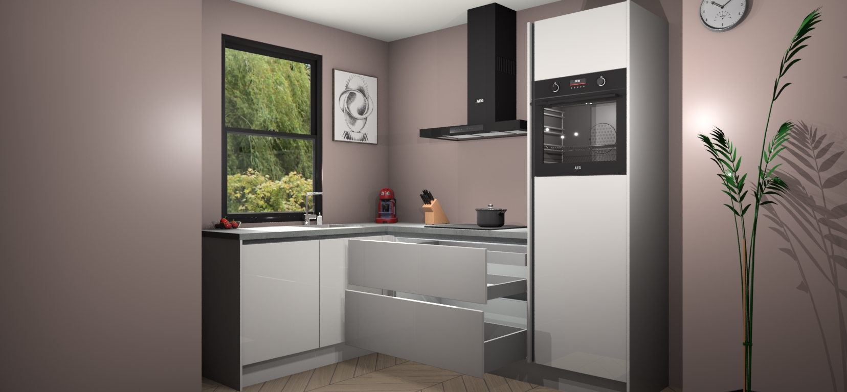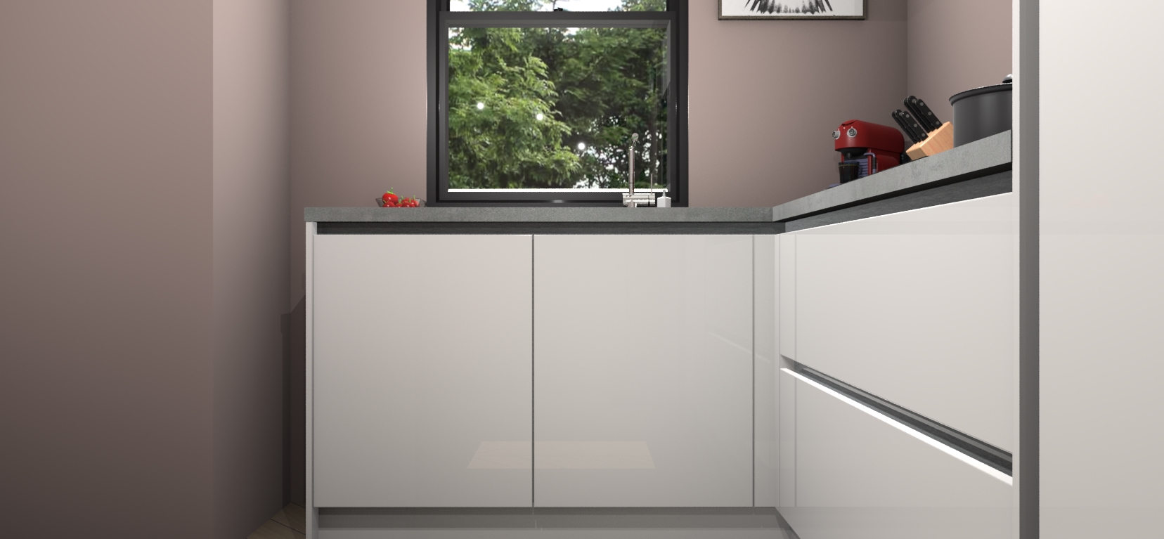 Moedige modernisten! De zijdegrijze hoogglans greeploze keuken Kinshasa is het perfecte antwoord op al uw keukendromen. Dit geraffineerde, tijdloze ontwerp combineert strakke kasten met hoogglans details zodat u die dure look krijgt zonder het dure prijskaartje. We weten dat planning en uitvoering de sleutels zijn tot een geslaagde keukenrenovatie, dus hebben we ervoor gezorgd dat we vijf inbouwapparaten in ons pakket hebben: een oven, inductiekookplaat, afzuigkap, vaatwasser en koelkast. Deze kunnen na bestelling gemakkelijk worden uitgebreid voor nog meer gemak.