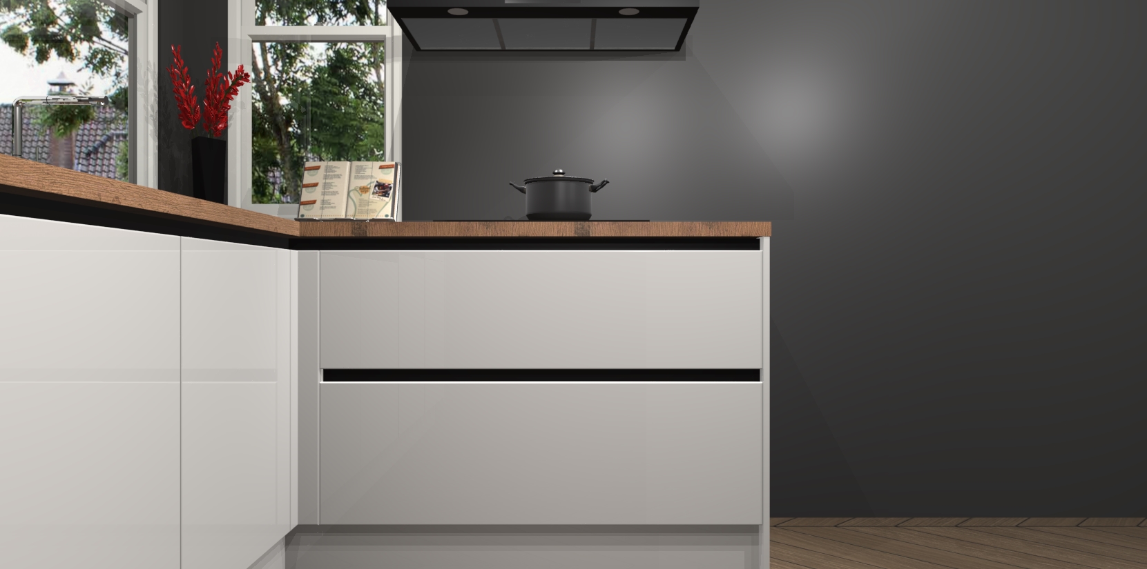 Inclusief plinten, stelpoten en werkblad