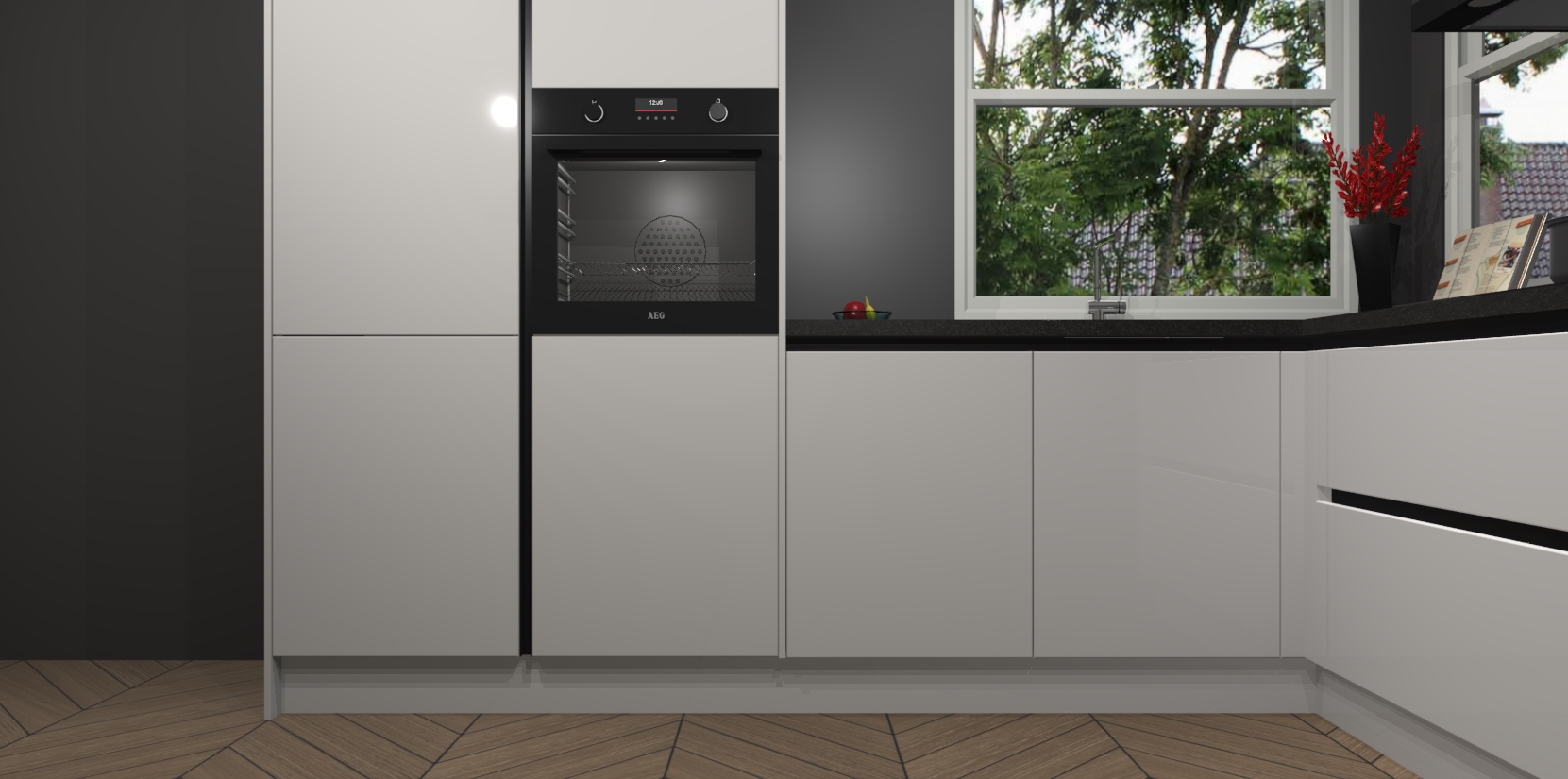 De Zijdegrijze hoogglans greeploze keuken Kotor wordt geleverd met vijf inbouwapparaten, waaronder een oven, inductiekookplaat, afzuigkap, vaatwasser en koelkast. En als u uw apparatuur wilt upgraden, kunnen we u na bestelling eenvoudig helpen overstappen naar AEG. Bovendien heeft deze keuken soft close deuren, zodat lades en kastjes geruisloos en zonder klepperen sluiten!