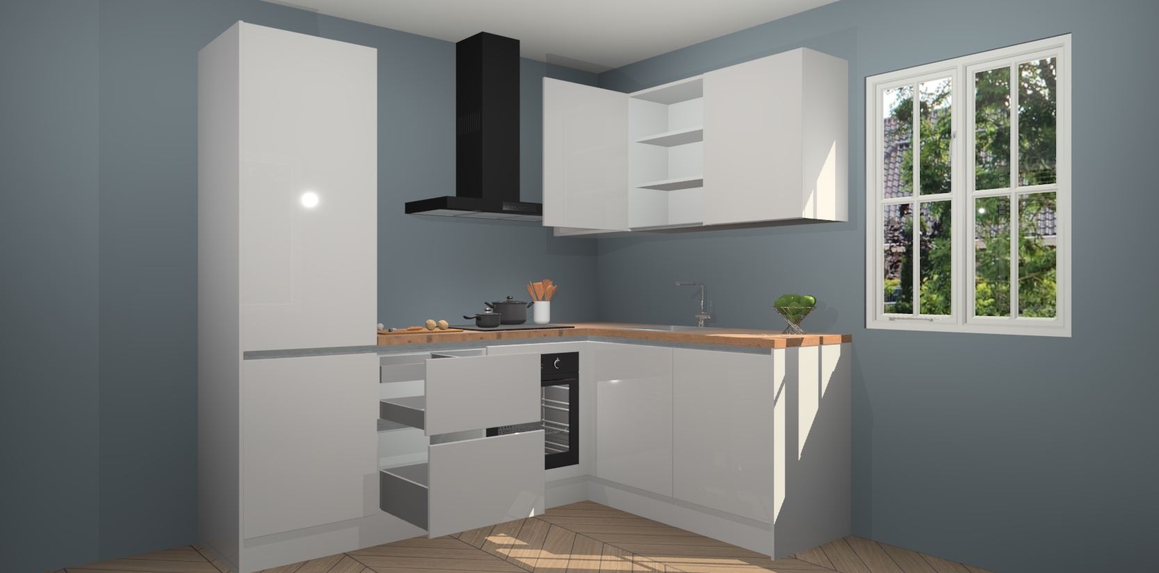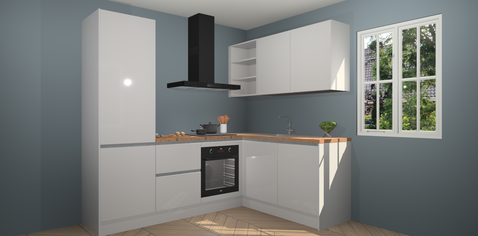 Inclusief plinten, stelpoten en werkblad