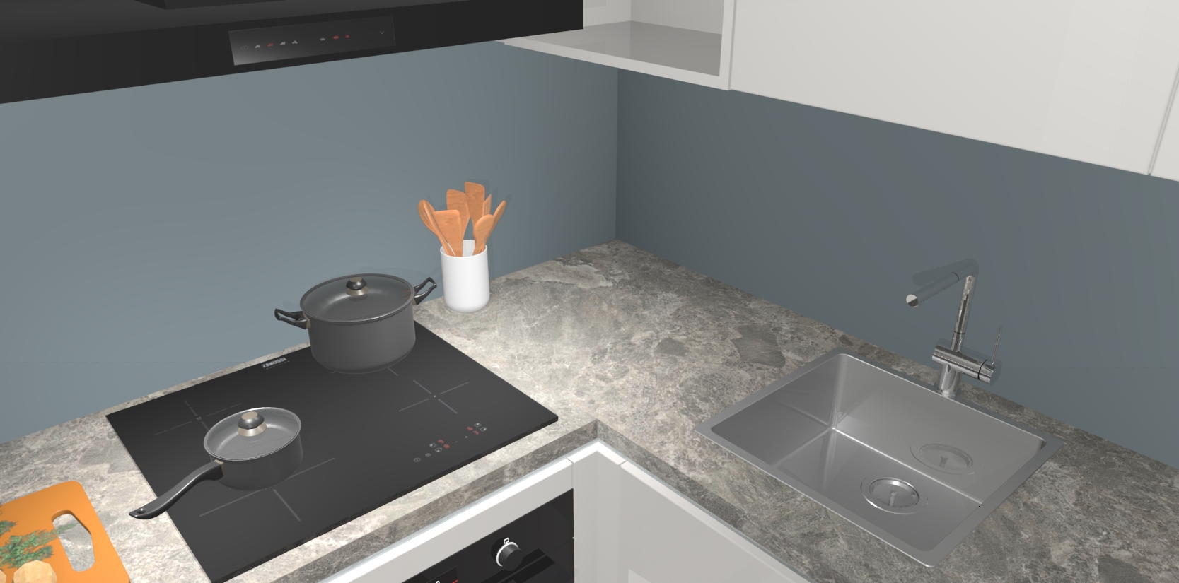 Inclusief plinten, stelpoten en werkblad
