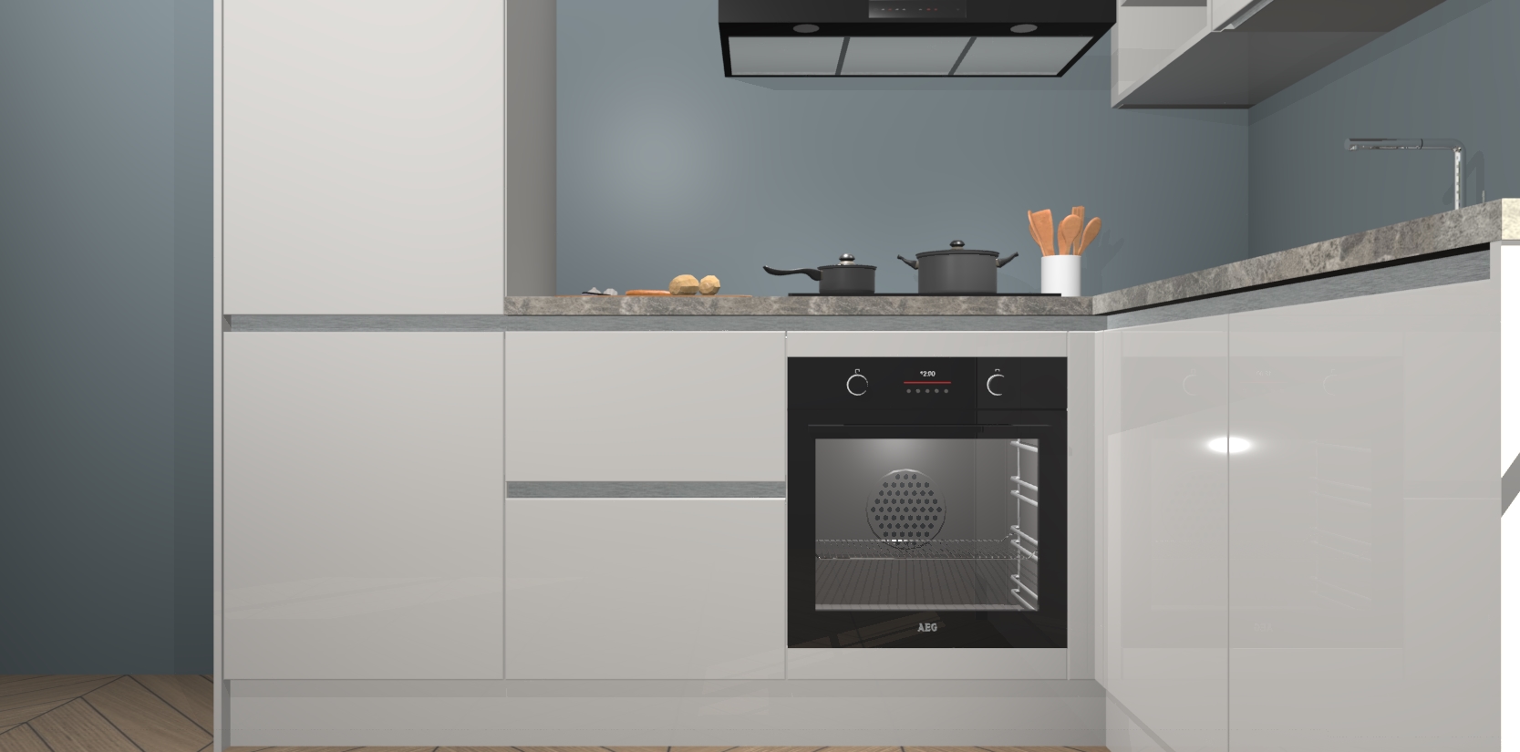Dit model biedt u voldoende opbergruimte en vijf ingebouwde apparaten: een oven, inductiekookplaat, afzuigkap, vaatwasser en koelkast. Deze apparaten kunnen gemakkelijk worden geüpgrade naar AEG nadat u besteld heeft. De verschillende laden en kastjes bevatten softclose-deuren waardoor ze gezellig dichtvallen met een geruststellend helemaal geruisloos geluid. En dat is nog niet alles! We garanderen ook dat de prijs altijd laag blijft - dus haal nu uw Zijdegrijze hoogglans greeploze keuken Krakau terwijl het kan.