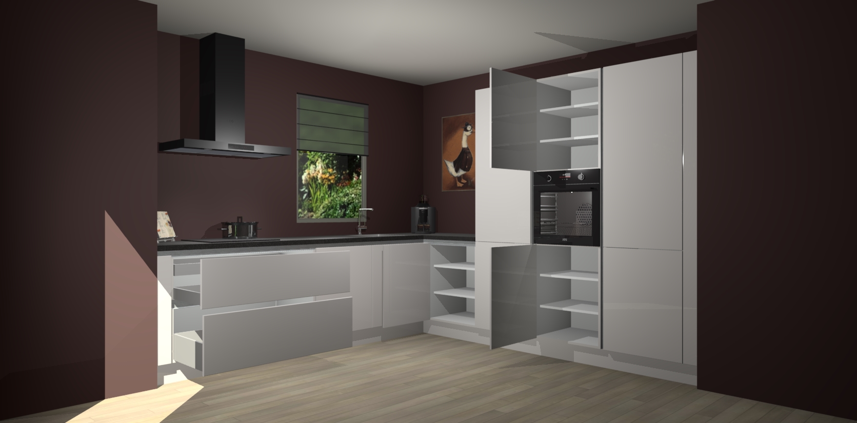 Welkom bij de Zijdegrijze hoogglans greeploze keuken Laos. Deze prachtige keuken zal de komende jaren het middelpunt van de belangstelling in uw huis zijn. Uitgerust met vijf inbouwapparaten komt u nooit kookgereedschap tekort. Bovendien geeft de warme houtlook elke ruimte een uitnodigende en tijdloze uitstraling.