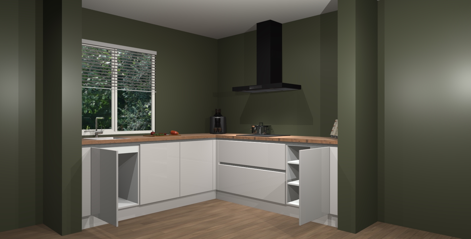 In deze box zijn alle kleuren verzameld van de deuren en werkbladen. Vraag de gratis kleurenbox aan en kijk thuis rustig verder!