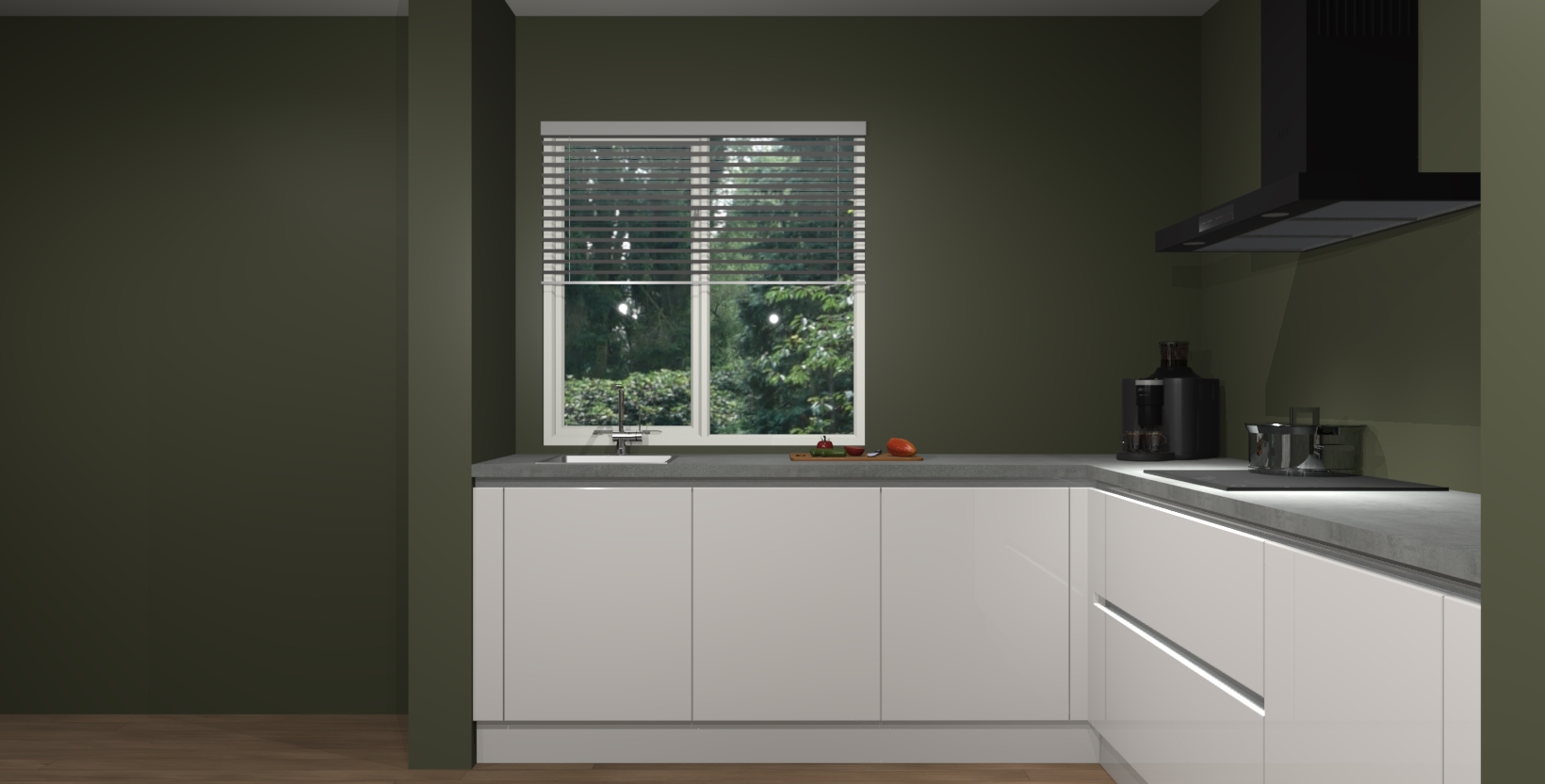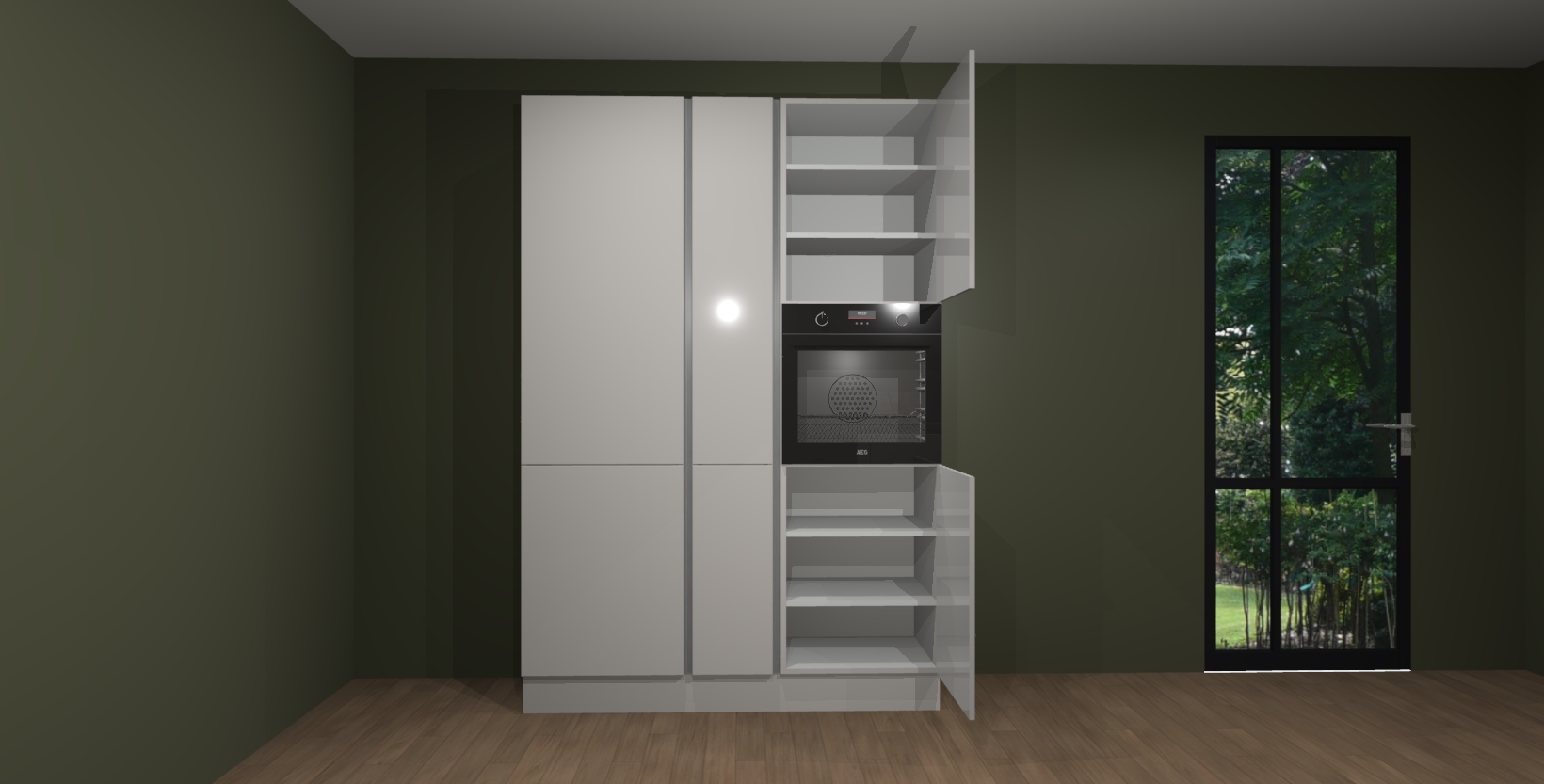 Met een modern, tijdloos design en ruime opslagruimte, zult u zich in no-time thuis voelen in uw nieuwe keuken. Uw leven wordt eenvoudiger met de soft-close deuren die voor het ultieme stille comfort zorgen - geen geluid dat u stoort terwijl u kookt. Ook is de keuken voorzien van 5 ingebouwde apparaten: een oven, inductie kookplaat, afzuigkap, vaatwasser en koelkast. Deze kunnen gemakkelijk na bestelling worden bijgewerkt naar AEG - waardoor uw luxe ervaring compleet is.
