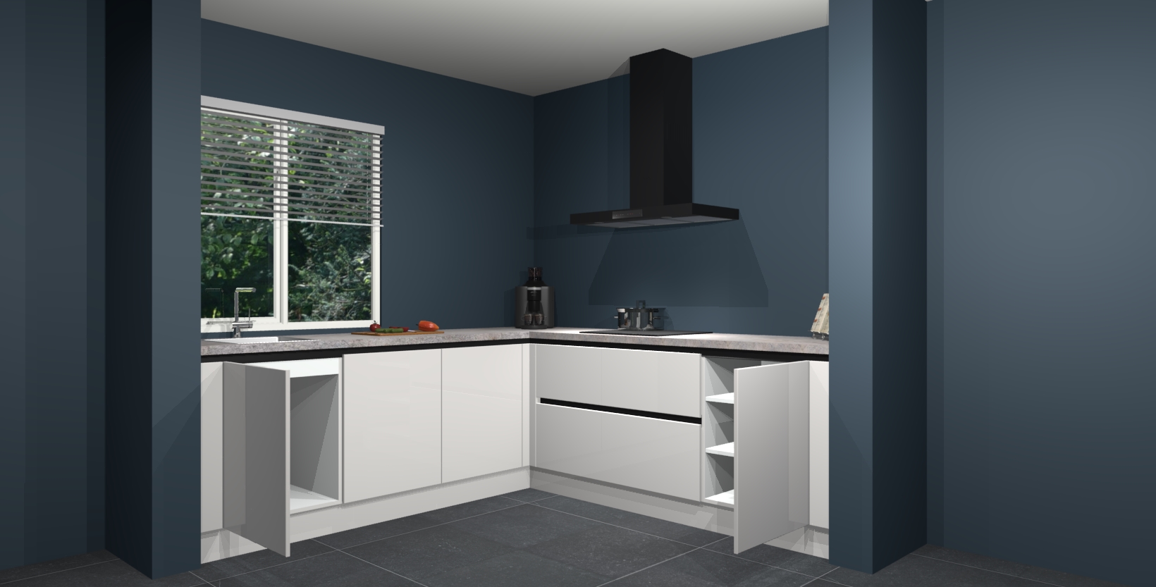 Hoekonderkast met le-mans systeem