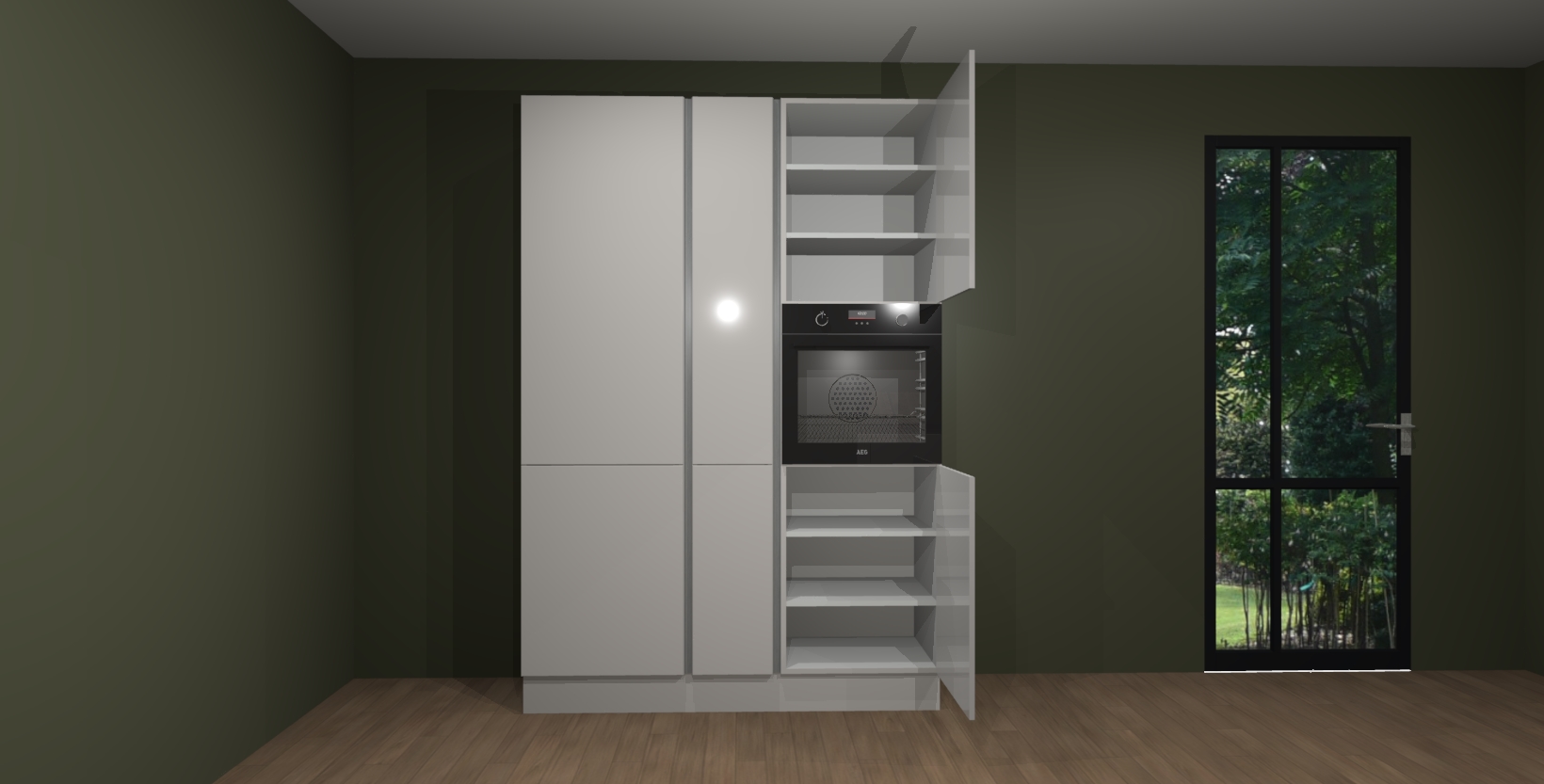 Met een modern, tijdloos design en ruime opslagruimte, zult u zich in no-time thuis voelen in uw nieuwe keuken. Uw leven wordt eenvoudiger met de soft-close deuren die voor het ultieme stille comfort zorgen - geen geluid dat u stoort terwijl u kookt. Ook is de keuken voorzien van 5 ingebouwde apparaten: een oven, inductie kookplaat, afzuigkap, vaatwasser en koelkast. Deze kunnen gemakkelijk na bestelling worden bijgewerkt naar AEG - waardoor uw luxe ervaring compleet is.