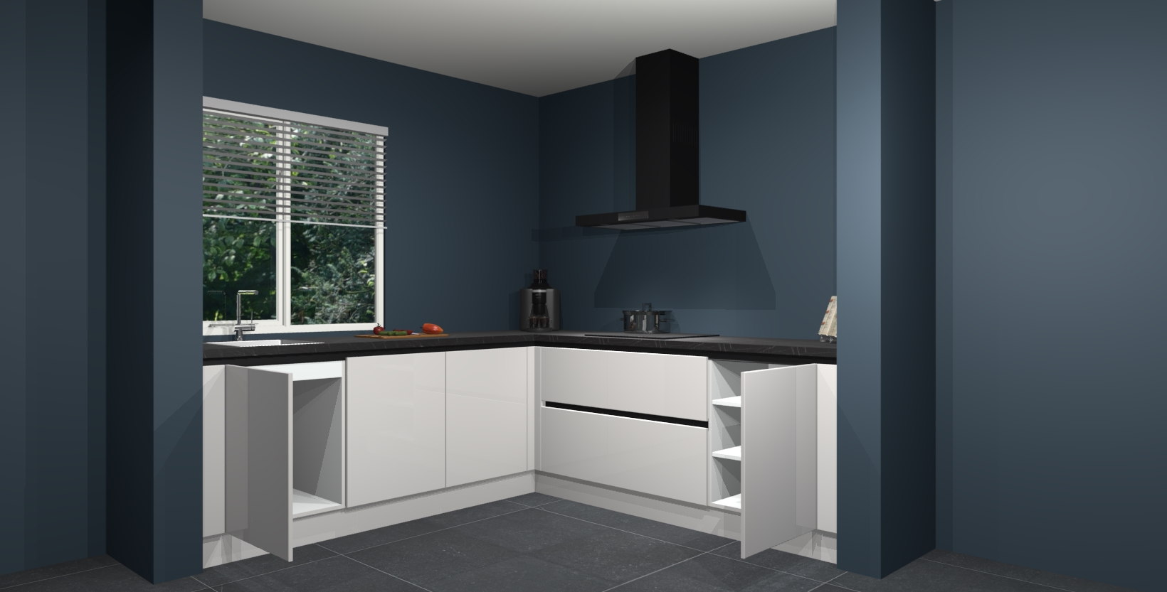 Met een modern, tijdloos design en ruime opslagruimte, zult u zich in no-time thuis voelen in uw nieuwe keuken. Uw leven wordt eenvoudiger met de soft-close deuren die voor het ultieme stille comfort zorgen - geen geluid dat u stoort terwijl u kookt. Ook is de keuken voorzien van 5 ingebouwde apparaten: een oven, inductie kookplaat, afzuigkap, vaatwasser en koelkast. Deze kunnen gemakkelijk na bestelling worden bijgewerkt naar AEG - waardoor uw luxe ervaring compleet is.