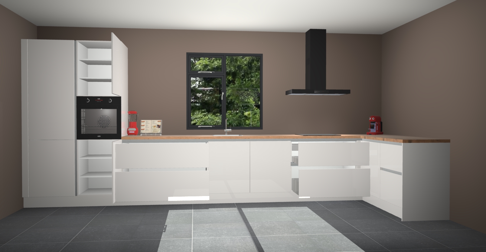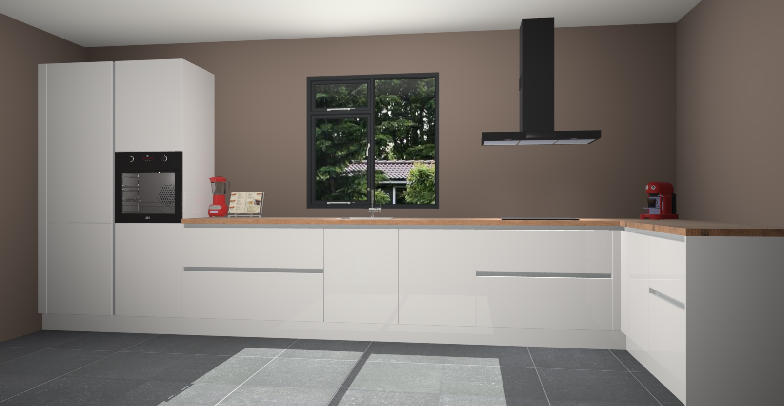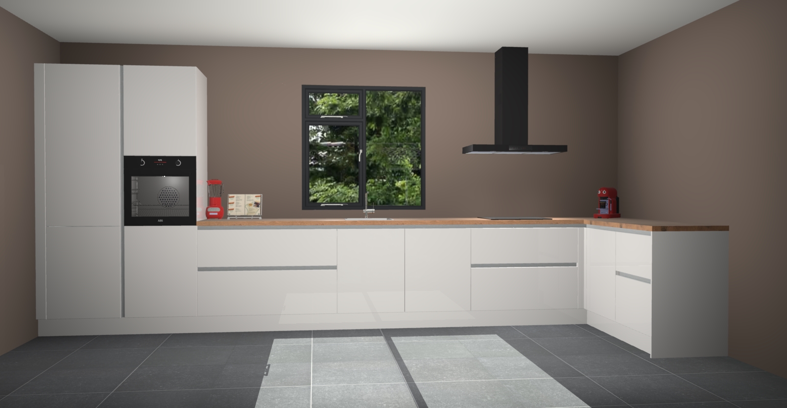 De Zijdegrijze hoogglans keuken Lille wordt geleverd met vijf inbouwapparaten - een oven, inductiekookplaat, afzuigkap, vaatwasser en koelkast. Maar dat is nog niet alles! Na bestelling kunnen deze apparaten eenvoudig worden geüpgraded naar premium AEG-apparatuur. Bovendien is er zelfs de optie om de oven te vervangen door een combimagnetron of uw inductiekookplaat te vervangen door een kookplaat met geïntegreerde afzuiging.