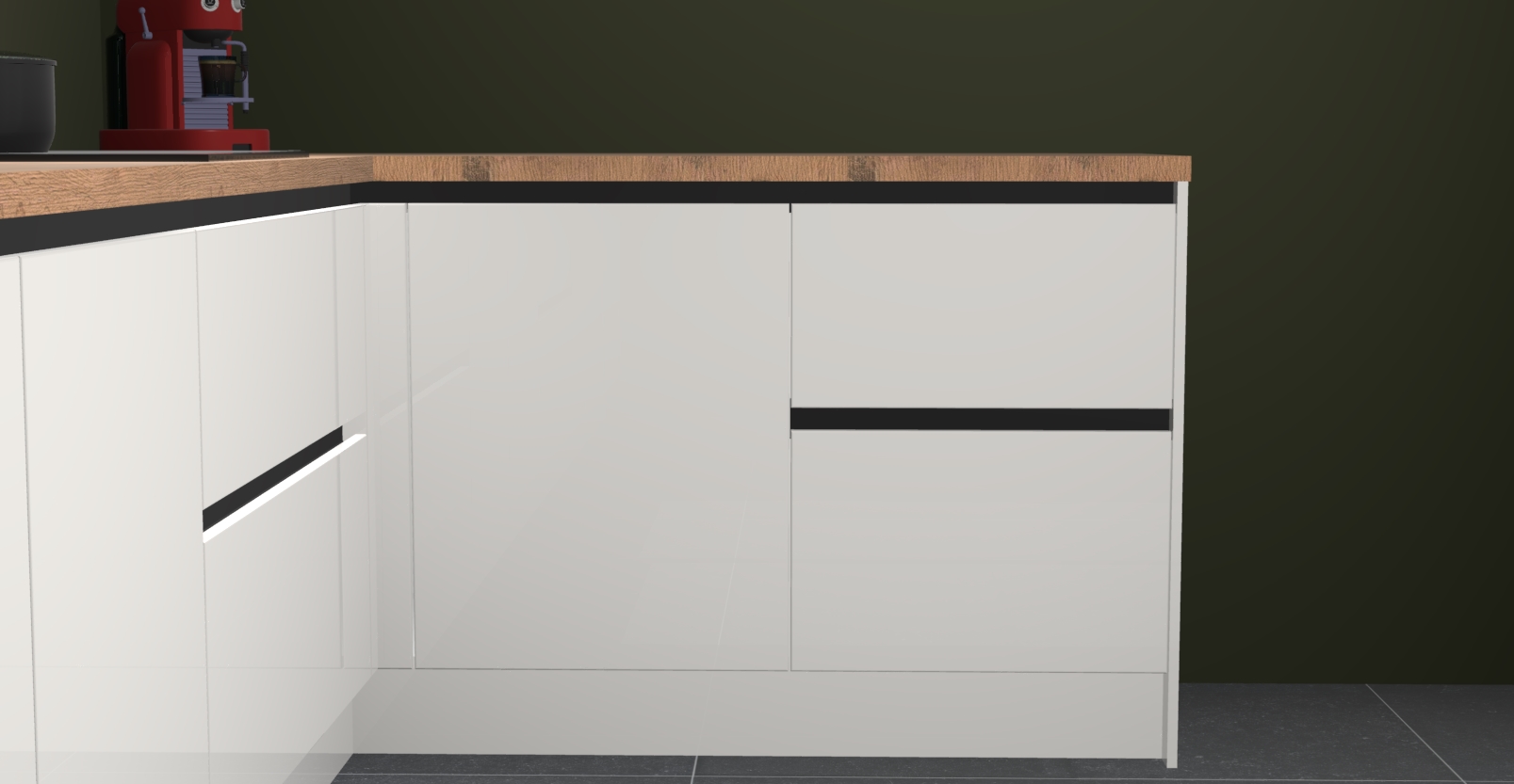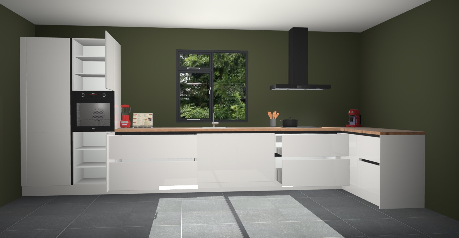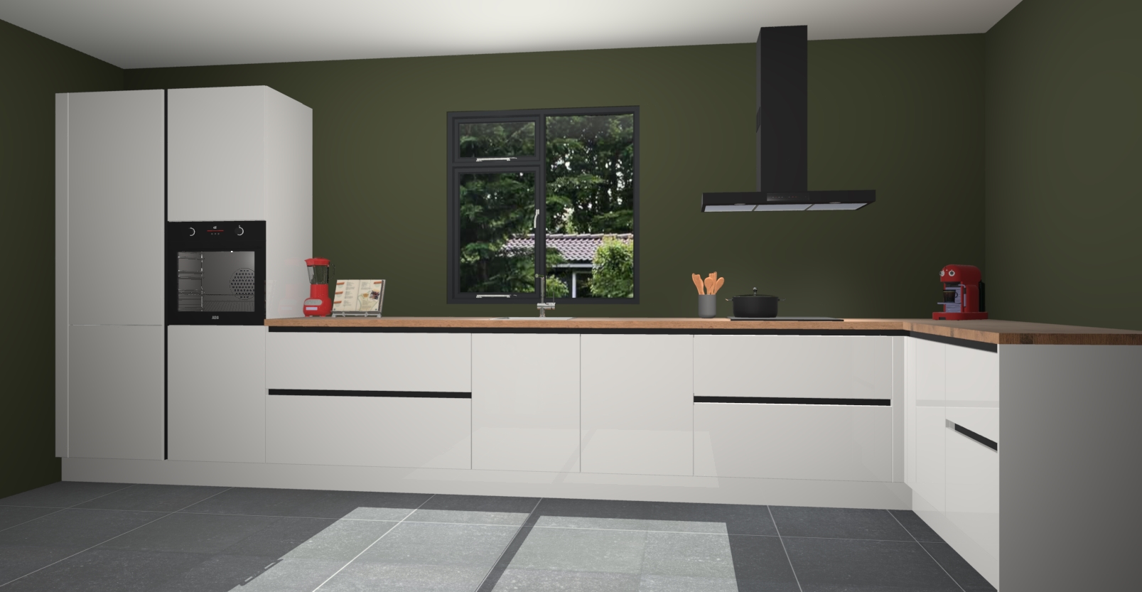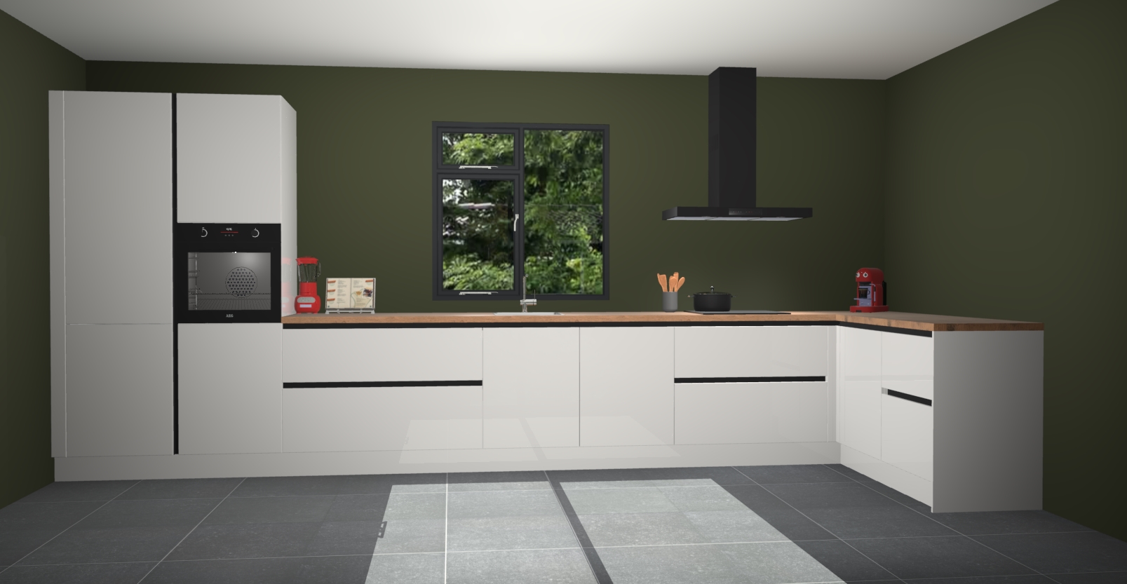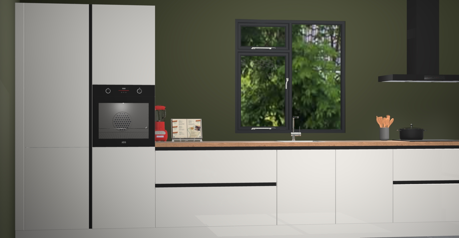 De Zijdegrijze hoogglans keuken Lille wordt geleverd met vijf inbouwapparaten - een oven, inductiekookplaat, afzuigkap, vaatwasser en koelkast. Maar dat is nog niet alles! Na bestelling kunnen deze apparaten eenvoudig worden geüpgraded naar premium AEG-apparatuur. Bovendien is er zelfs de optie om de oven te vervangen door een combimagnetron of uw inductiekookplaat te vervangen door een kookplaat met geïntegreerde afzuiging.