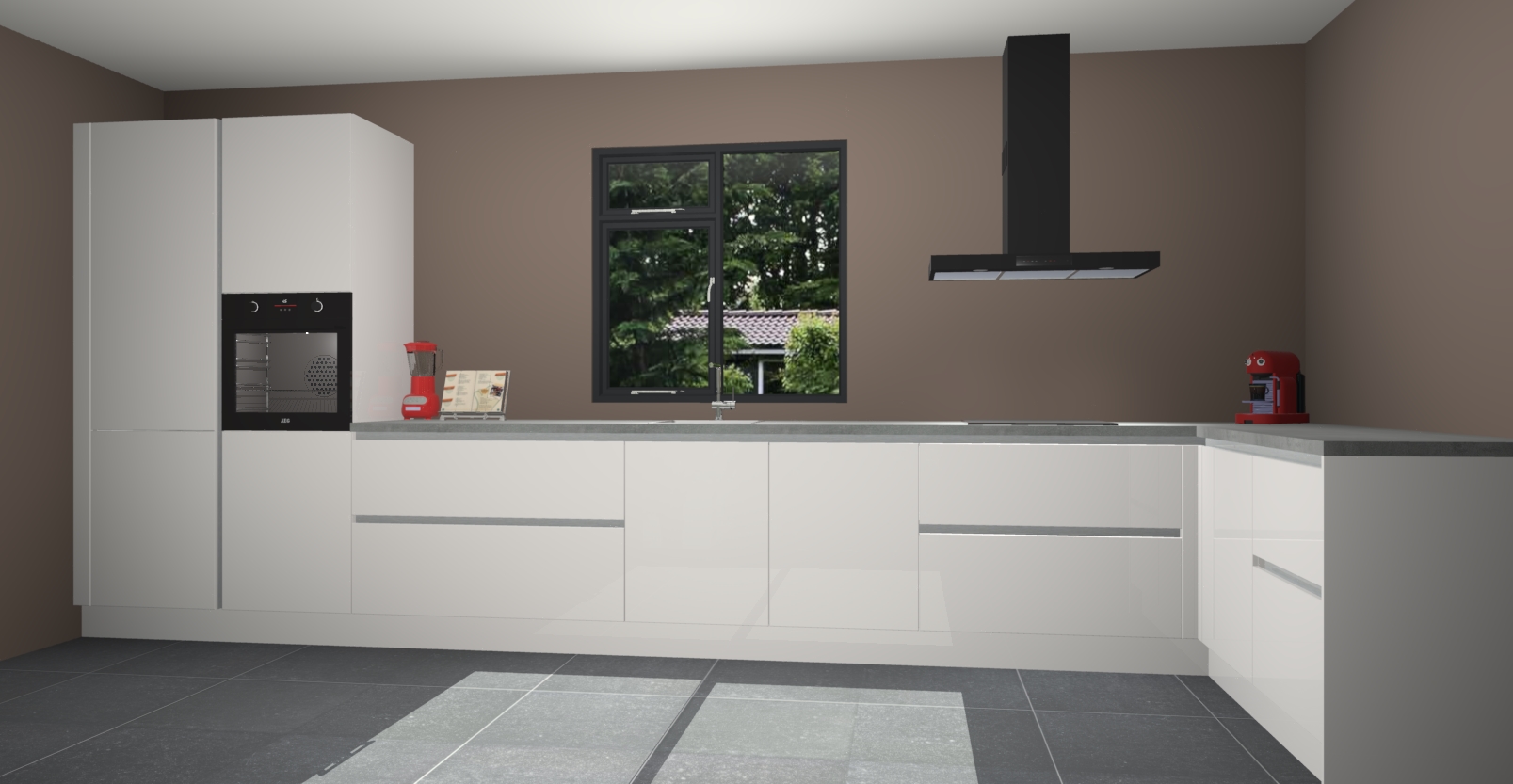 De Zijdegrijze hoogglans keuken Lille wordt geleverd met vijf inbouwapparaten - een oven, inductiekookplaat, afzuigkap, vaatwasser en koelkast. Maar dat is nog niet alles! Na bestelling kunnen deze apparaten eenvoudig worden geüpgraded naar premium AEG-apparatuur. Bovendien is er zelfs de optie om de oven te vervangen door een combimagnetron of uw inductiekookplaat te vervangen door een kookplaat met geïntegreerde afzuiging.