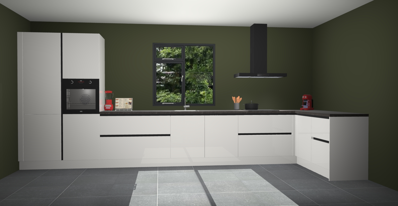 De Zijdegrijze hoogglans keuken Lille wordt geleverd met vijf inbouwapparaten - een oven, inductiekookplaat, afzuigkap, vaatwasser en koelkast. Maar dat is nog niet alles! Na bestelling kunnen deze apparaten eenvoudig worden geüpgraded naar premium AEG-apparatuur. Bovendien is er zelfs de optie om de oven te vervangen door een combimagnetron of uw inductiekookplaat te vervangen door een kookplaat met geïntegreerde afzuiging.