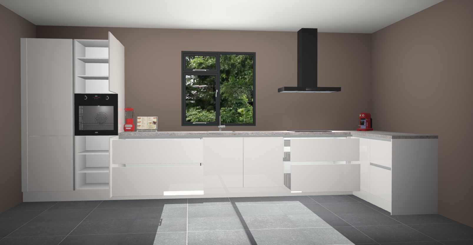 De Zijdegrijze hoogglans keuken Lille wordt geleverd met vijf inbouwapparaten - een oven, inductiekookplaat, afzuigkap, vaatwasser en koelkast. Maar dat is nog niet alles! Na bestelling kunnen deze apparaten eenvoudig worden geüpgraded naar premium AEG-apparatuur. Bovendien is er zelfs de optie om de oven te vervangen door een combimagnetron of uw inductiekookplaat te vervangen door een kookplaat met geïntegreerde afzuiging.