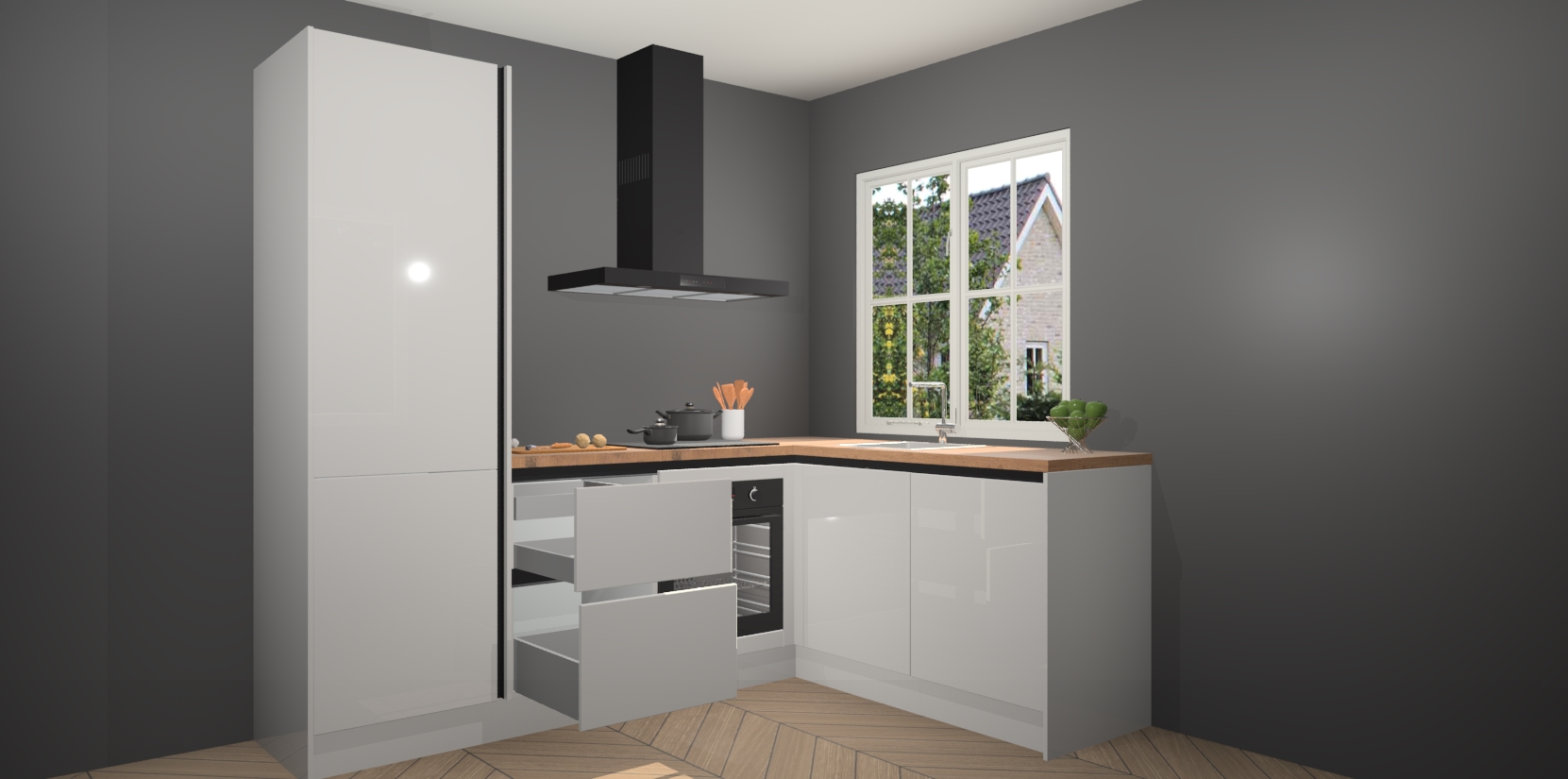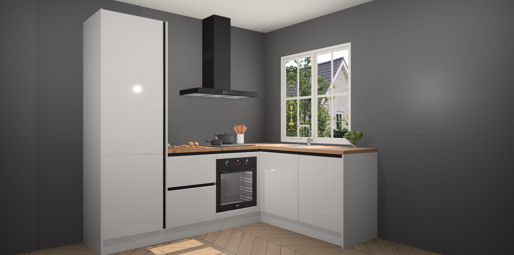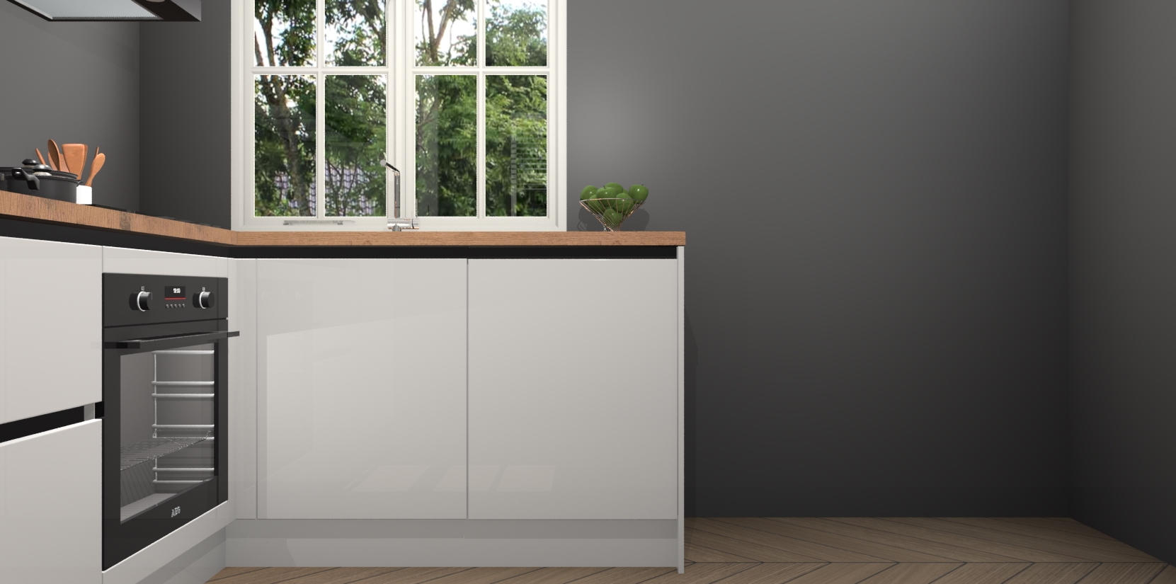 Onze Zijdegrijze hoogglans greeploze keuken Linz wordt geleverd met 5 ingebouwde apparaten: oven, inductiekookplaat, afzuigkap, vaatwasser en koelkast. Wij bieden altijd een scherpe prijs zonder dat dit ten koste gaat van de kwaliteit - zo weet u zeker dat u de beste prijs-kwaliteitverhouding krijgt! En het beste van alles is dat deze keuken snel wordt geleverd, met slechts 7 weken wachttijd tussen bestelling en levering.