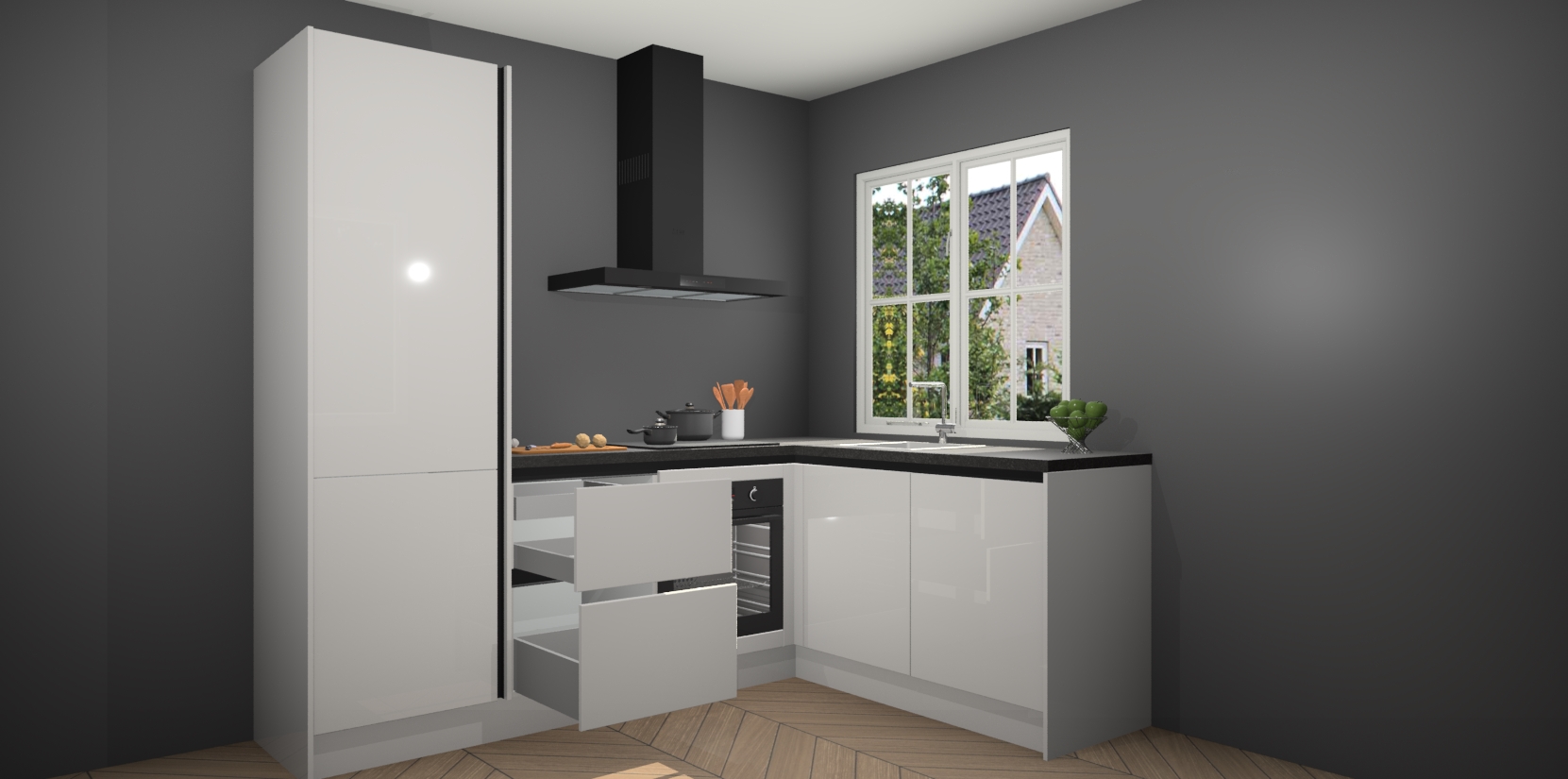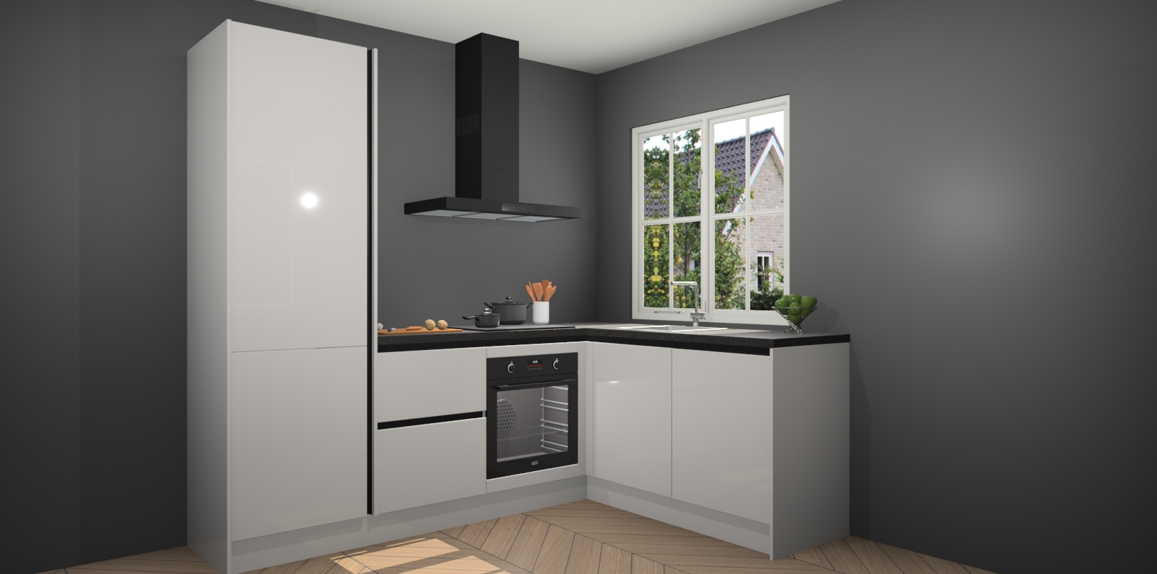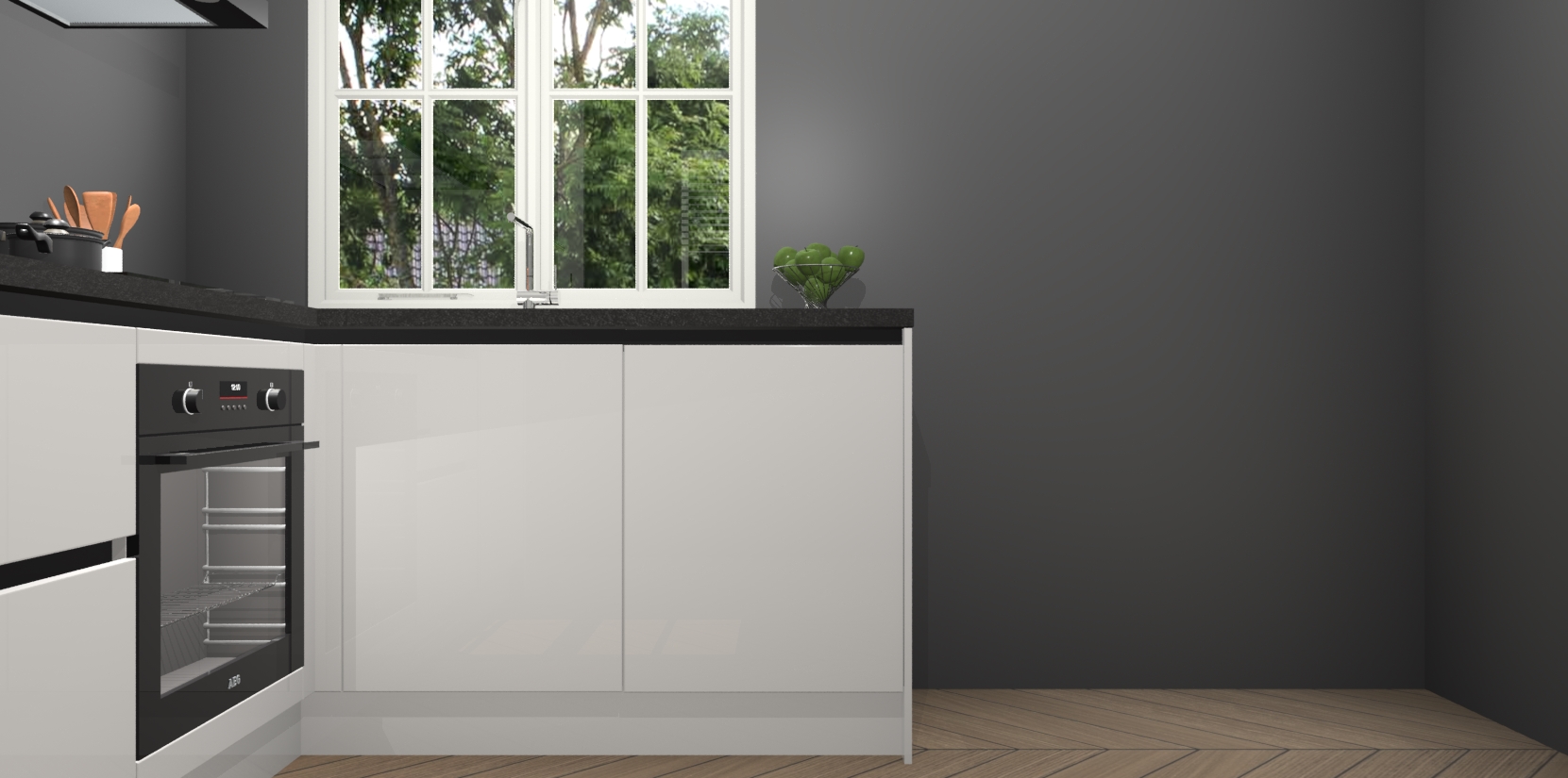 Onze Zijdegrijze hoogglans greeploze keuken Linz wordt geleverd met 5 ingebouwde apparaten: oven, inductiekookplaat, afzuigkap, vaatwasser en koelkast. Wij bieden altijd een scherpe prijs zonder dat dit ten koste gaat van de kwaliteit - zo weet u zeker dat u de beste prijs-kwaliteitverhouding krijgt! En het beste van alles is dat deze keuken snel wordt geleverd, met slechts 7 weken wachttijd tussen bestelling en levering.