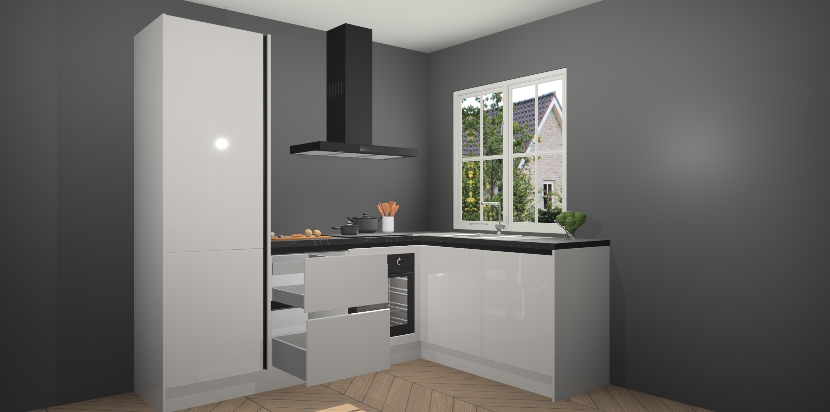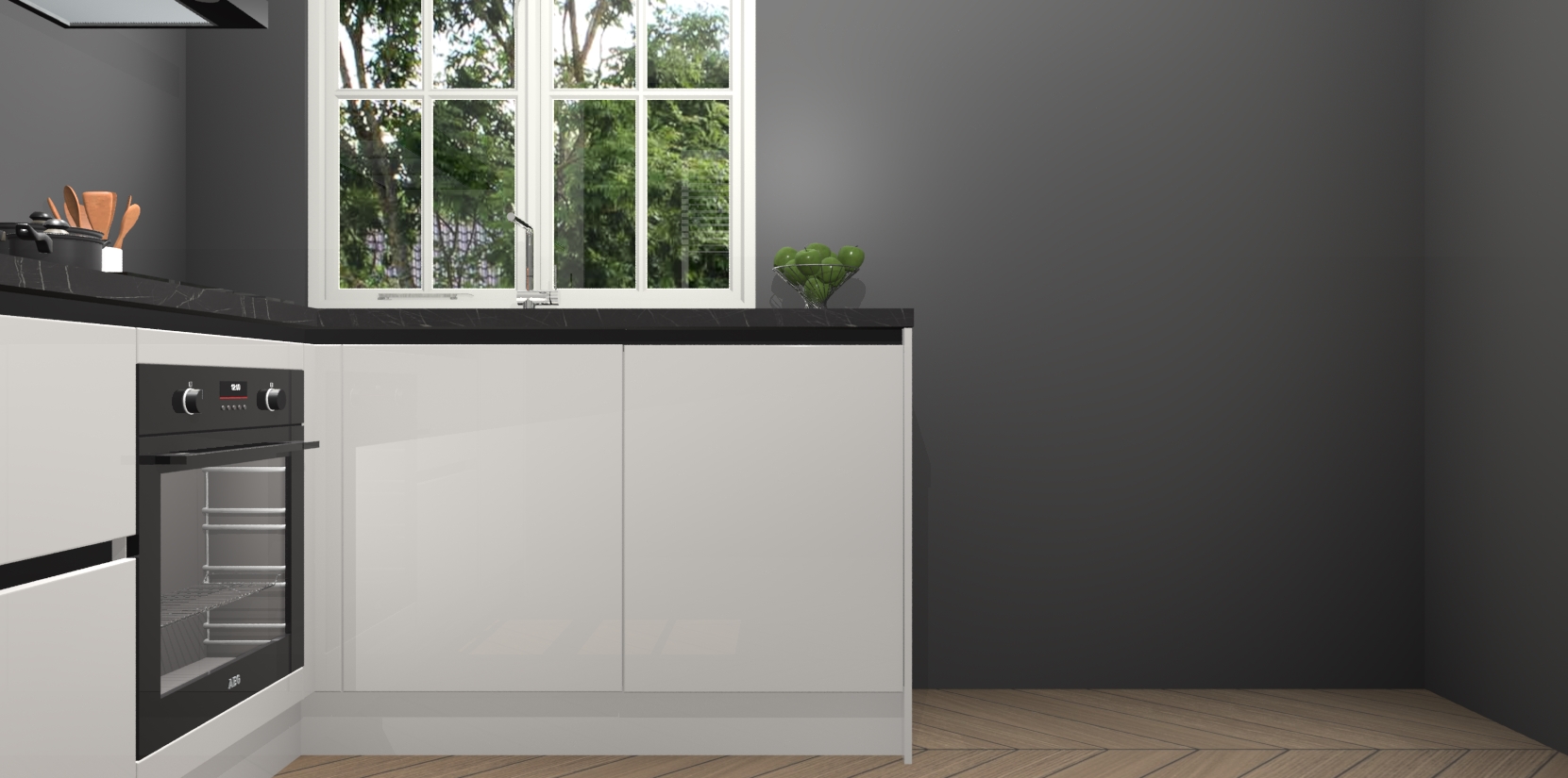 Onze Zijdegrijze hoogglans greeploze keuken Linz wordt geleverd met 5 ingebouwde apparaten: oven, inductiekookplaat, afzuigkap, vaatwasser en koelkast. Wij bieden altijd een scherpe prijs zonder dat dit ten koste gaat van de kwaliteit - zo weet u zeker dat u de beste prijs-kwaliteitverhouding krijgt! En het beste van alles is dat deze keuken snel wordt geleverd, met slechts 7 weken wachttijd tussen bestelling en levering.