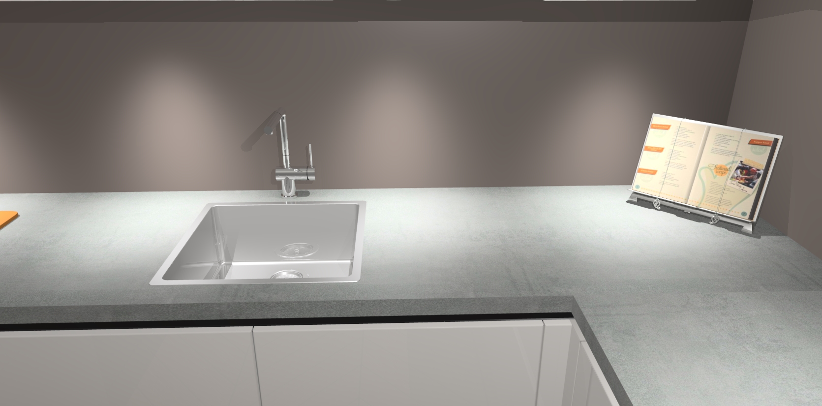 • De spoelbak is nog niet in gevreesd, dit dient tijdens het werk gedaan te worden