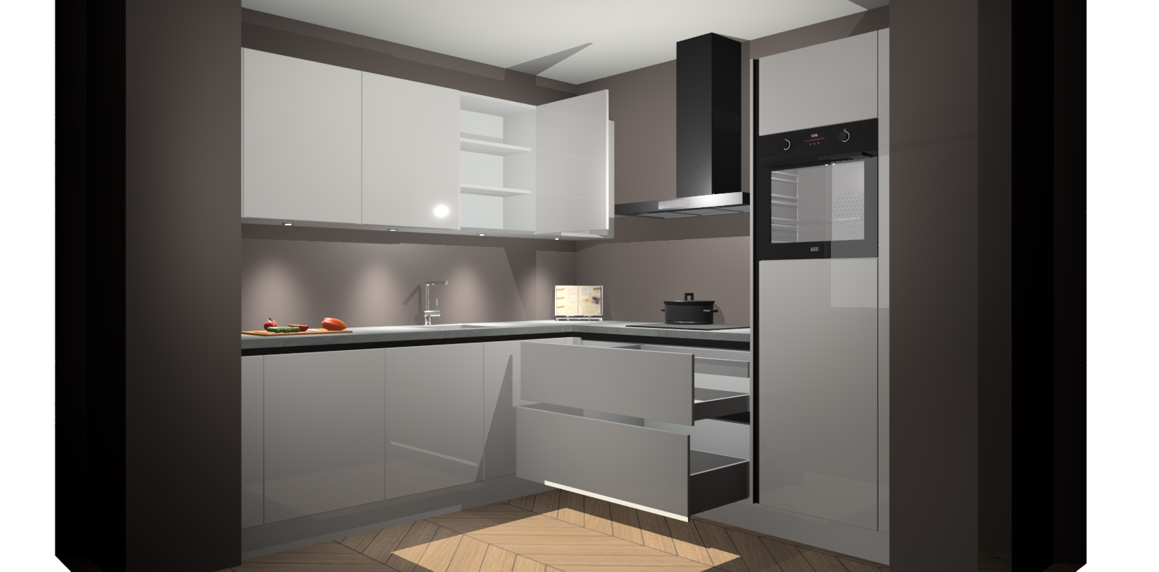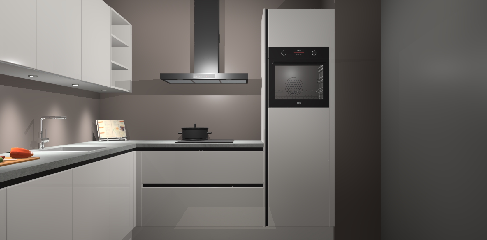 Met een modern, tijdloos design en ruime opslagruimte, zult u zich in no-time thuis voelen in uw nieuwe keuken. Uw leven wordt eenvoudiger met de soft-close deuren die voor het ultieme stille comfort zorgen - geen geluid dat u stoort terwijl u kookt. Ook is de keuken voorzien van 5 ingebouwde apparaten: een oven, inductie kookplaat, afzuigkap, vaatwasser en koelkast. Deze kunnen gemakkelijk na bestelling worden bijgewerkt naar AEG - waardoor uw luxe ervaring compleet is.