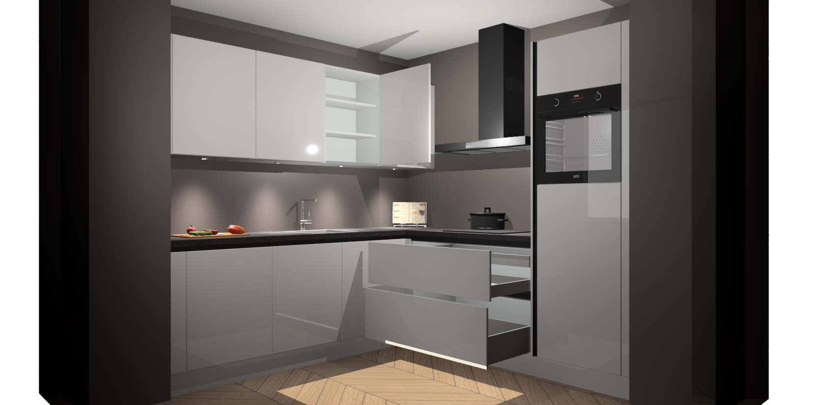 Met een modern, tijdloos design en ruime opslagruimte, zult u zich in no-time thuis voelen in uw nieuwe keuken. Uw leven wordt eenvoudiger met de soft-close deuren die voor het ultieme stille comfort zorgen - geen geluid dat u stoort terwijl u kookt. Ook is de keuken voorzien van 5 ingebouwde apparaten: een oven, inductie kookplaat, afzuigkap, vaatwasser en koelkast. Deze kunnen gemakkelijk na bestelling worden bijgewerkt naar AEG - waardoor uw luxe ervaring compleet is.