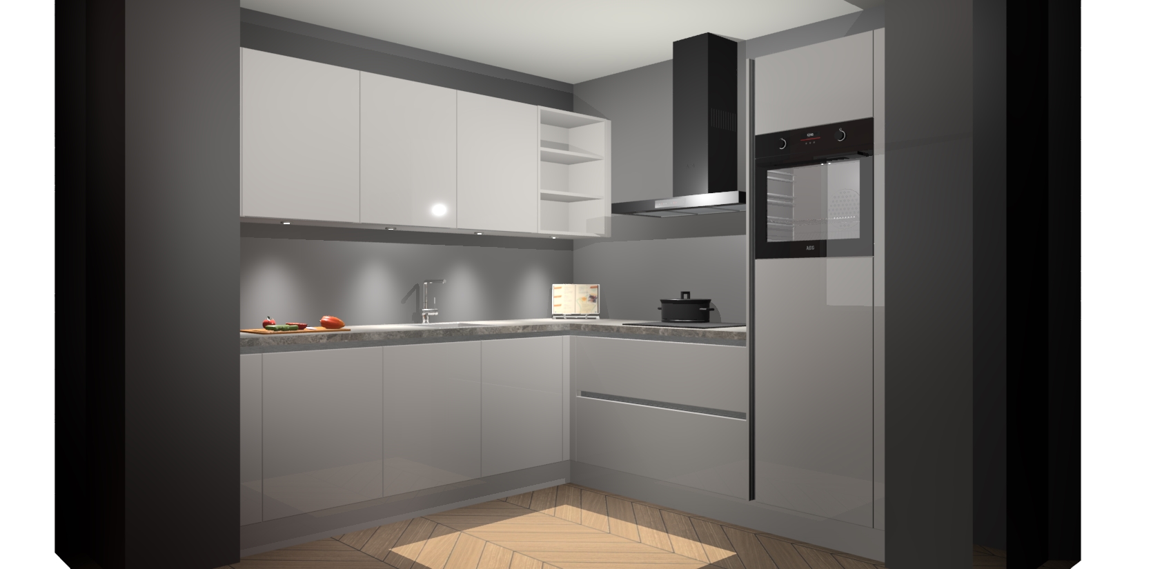 Met een modern, tijdloos design en ruime opslagruimte, zult u zich in no-time thuis voelen in uw nieuwe keuken. Uw leven wordt eenvoudiger met de soft-close deuren die voor het ultieme stille comfort zorgen - geen geluid dat u stoort terwijl u kookt. Ook is de keuken voorzien van 5 ingebouwde apparaten: een oven, inductie kookplaat, afzuigkap, vaatwasser en koelkast. Deze kunnen gemakkelijk na bestelling worden bijgewerkt naar AEG - waardoor uw luxe ervaring compleet is.