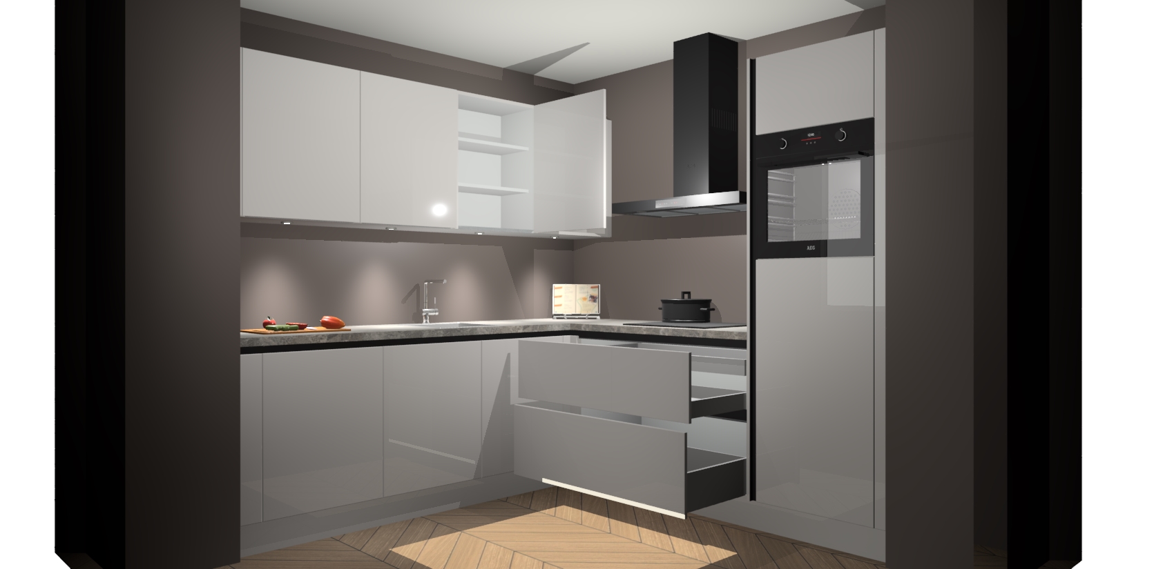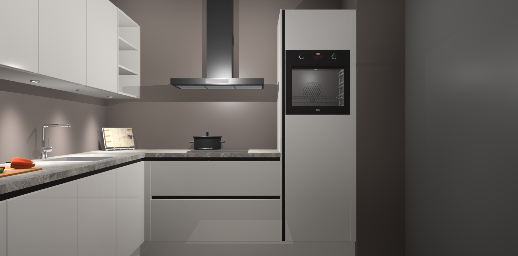 Met een modern, tijdloos design en ruime opslagruimte, zult u zich in no-time thuis voelen in uw nieuwe keuken. Uw leven wordt eenvoudiger met de soft-close deuren die voor het ultieme stille comfort zorgen - geen geluid dat u stoort terwijl u kookt. Ook is de keuken voorzien van 5 ingebouwde apparaten: een oven, inductie kookplaat, afzuigkap, vaatwasser en koelkast. Deze kunnen gemakkelijk na bestelling worden bijgewerkt naar AEG - waardoor uw luxe ervaring compleet is.