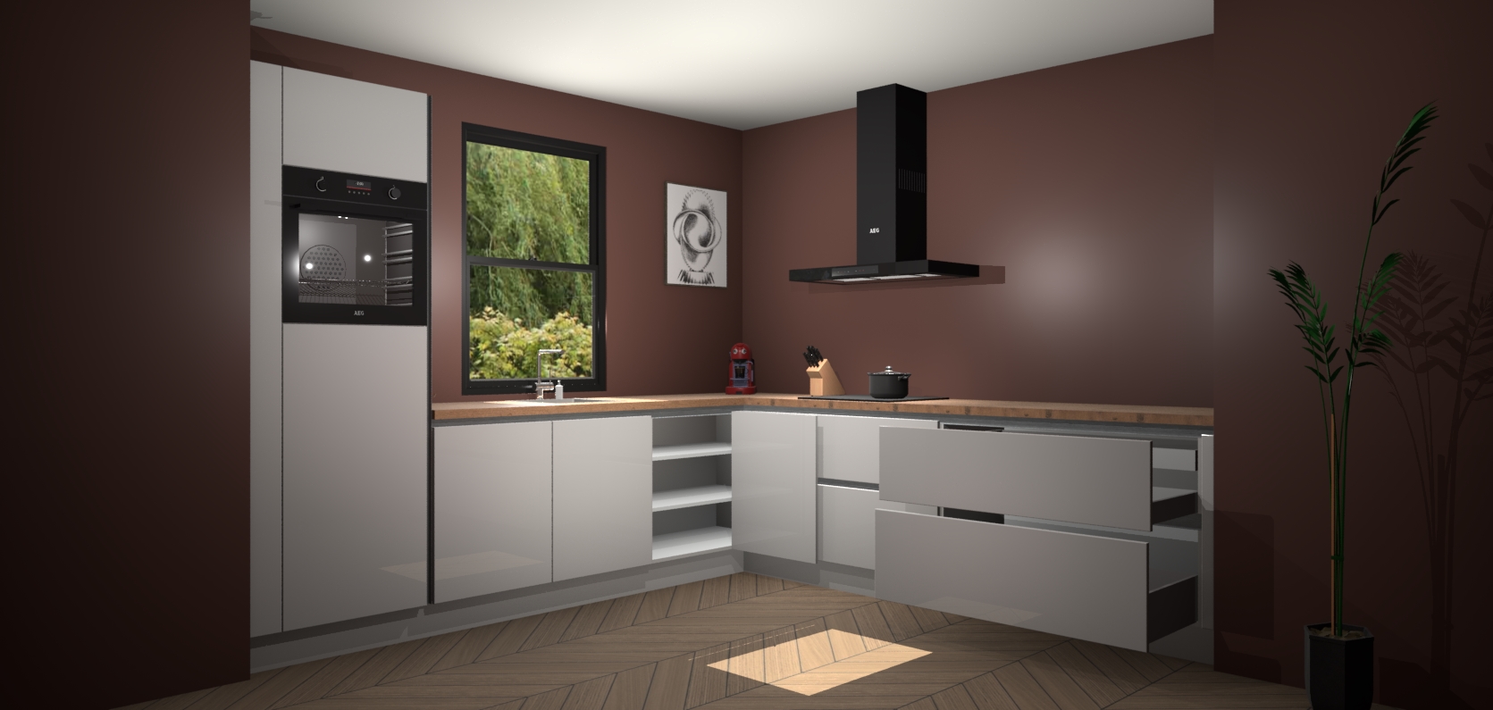 Welkom bij de zijdegrijze hoogglans greeploze keuken Lublin. Deze prachtige keuken zal de komende jaren het middelpunt van de belangstelling in uw huis zijn. Uitgerust met vijf inbouwapparaten komt u nooit kookgereedschap tekort. Bovendien geeft de warme houtlook elke ruimte een uitnodigende en tijdloze uitstraling.
