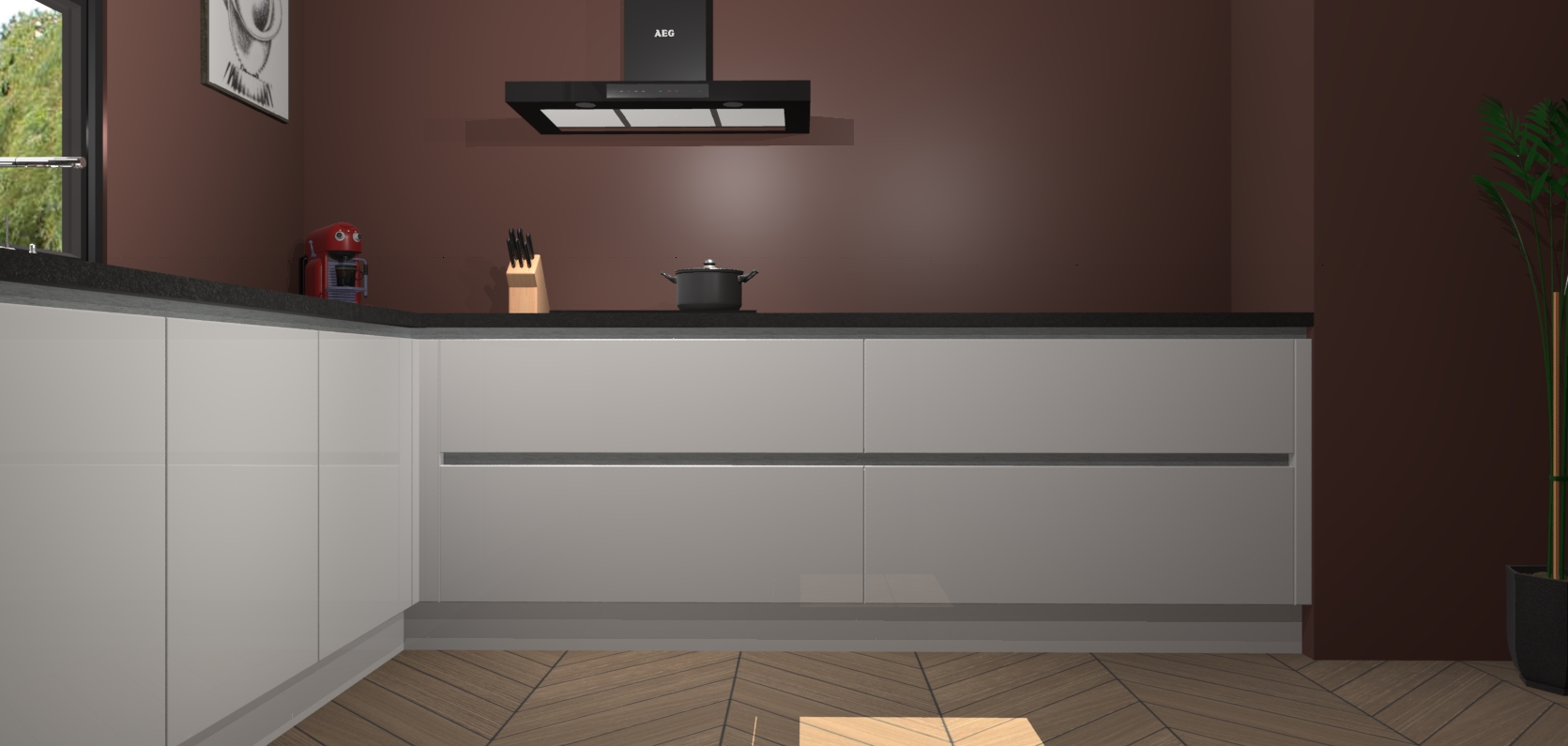 Welkom bij de zijdegrijze hoogglans greeploze keuken Lublin. Deze prachtige keuken zal de komende jaren het middelpunt van de belangstelling in uw huis zijn. Uitgerust met vijf inbouwapparaten komt u nooit kookgereedschap tekort. Bovendien geeft de warme houtlook elke ruimte een uitnodigende en tijdloze uitstraling.