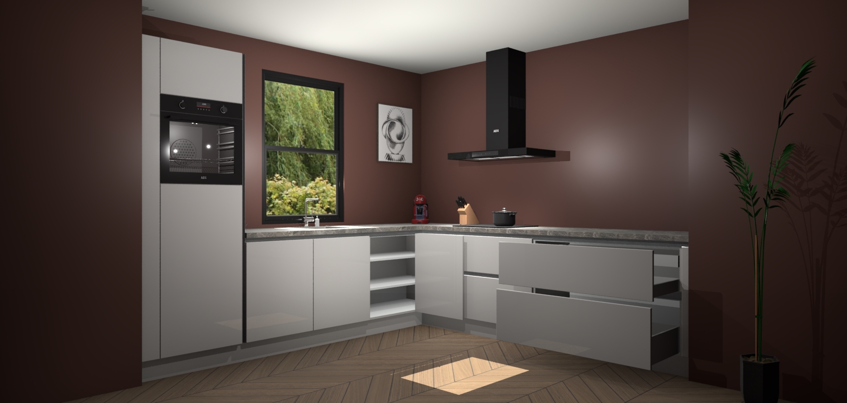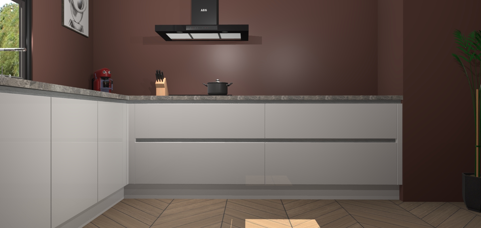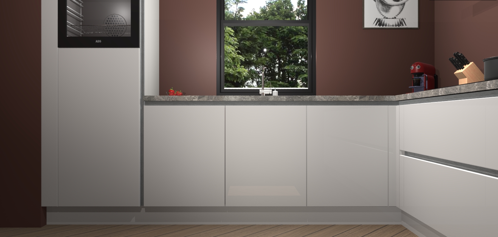 Welkom bij de zijdegrijze hoogglans greeploze keuken Lublin. Deze prachtige keuken zal de komende jaren het middelpunt van de belangstelling in uw huis zijn. Uitgerust met vijf inbouwapparaten komt u nooit kookgereedschap tekort. Bovendien geeft de warme houtlook elke ruimte een uitnodigende en tijdloze uitstraling.