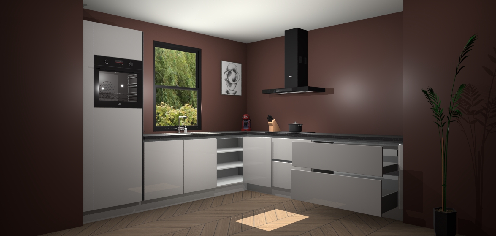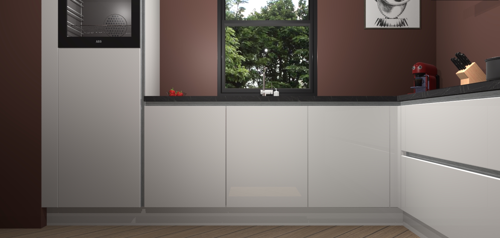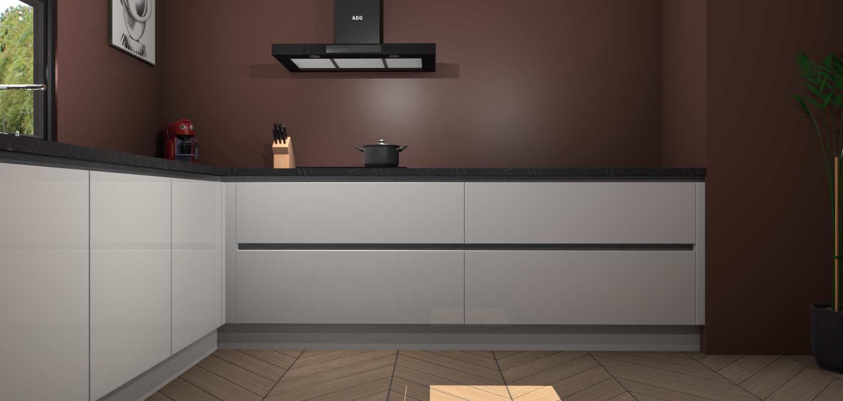 Welkom bij de zijdegrijze hoogglans greeploze keuken Lublin. Deze prachtige keuken zal de komende jaren het middelpunt van de belangstelling in uw huis zijn. Uitgerust met vijf inbouwapparaten komt u nooit kookgereedschap tekort. Bovendien geeft de warme houtlook elke ruimte een uitnodigende en tijdloze uitstraling.