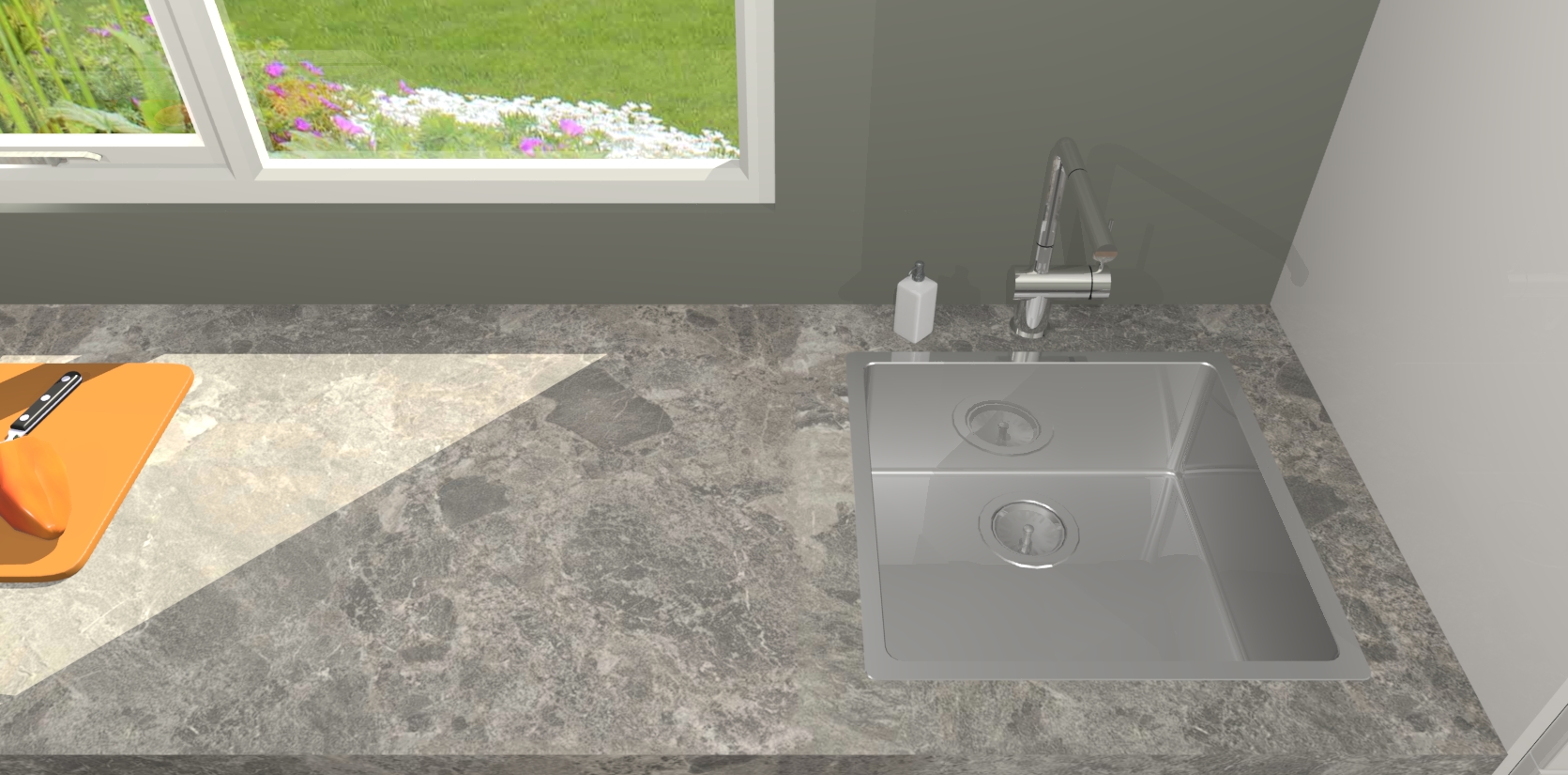 - De spoelbak is nog niet in gevreesd. Dit dient tijdens het werk gedaan te worden