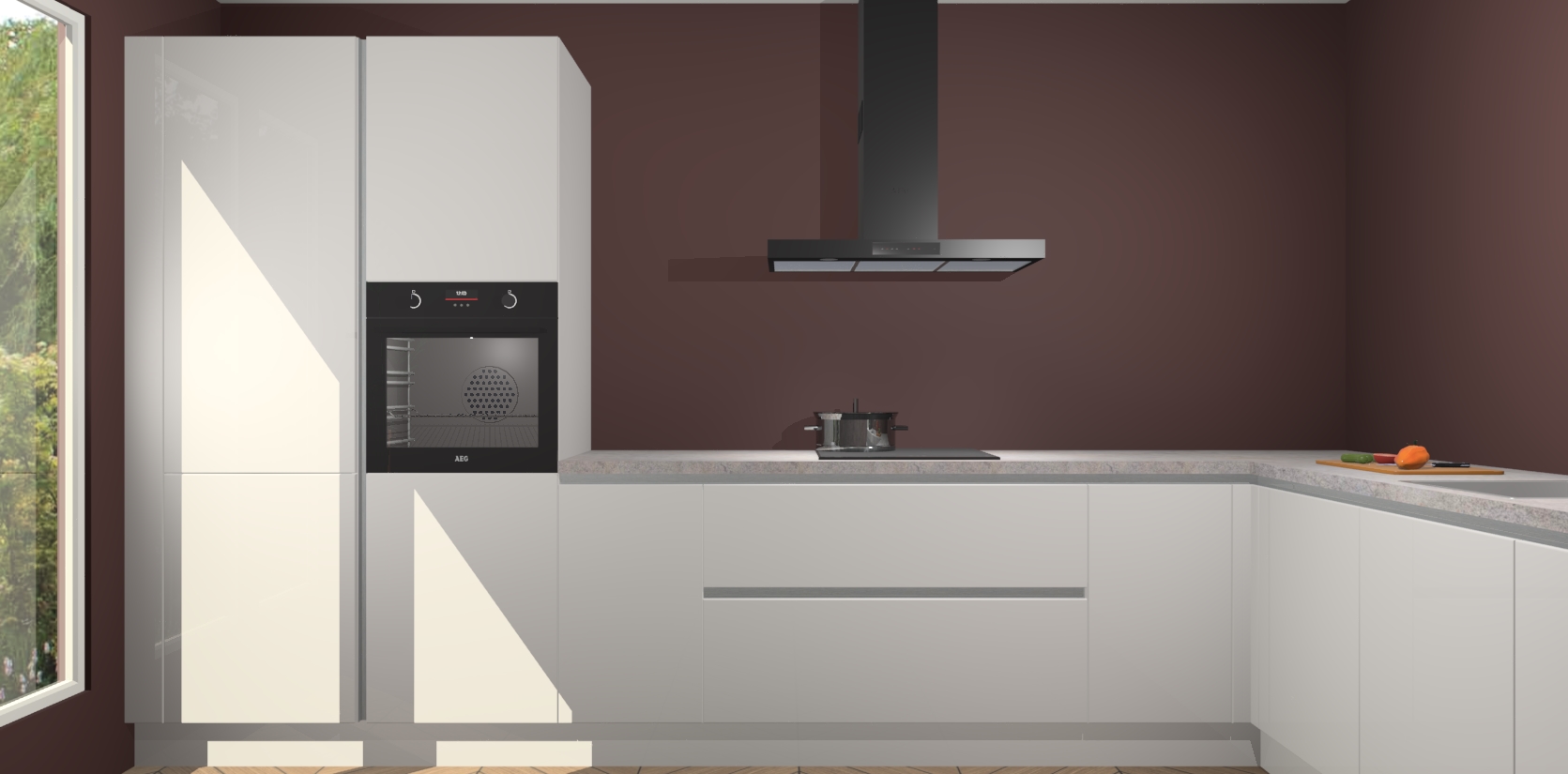 Met een modern, tijdloos design en ruime opslagruimte, zult u zich in no-time thuis voelen in uw nieuwe keuken. Uw leven wordt eenvoudiger met de soft-close deuren die voor het ultieme stille comfort zorgen - geen geluid dat u stoort terwijl u kookt. Ook is de keuken voorzien van 5 ingebouwde apparaten: een oven, inductie kookplaat, afzuigkap, vaatwasser en koelkast. Deze kunnen gemakkelijk na bestelling worden bijgewerkt naar AEG - waardoor uw luxe ervaring compleet is.
